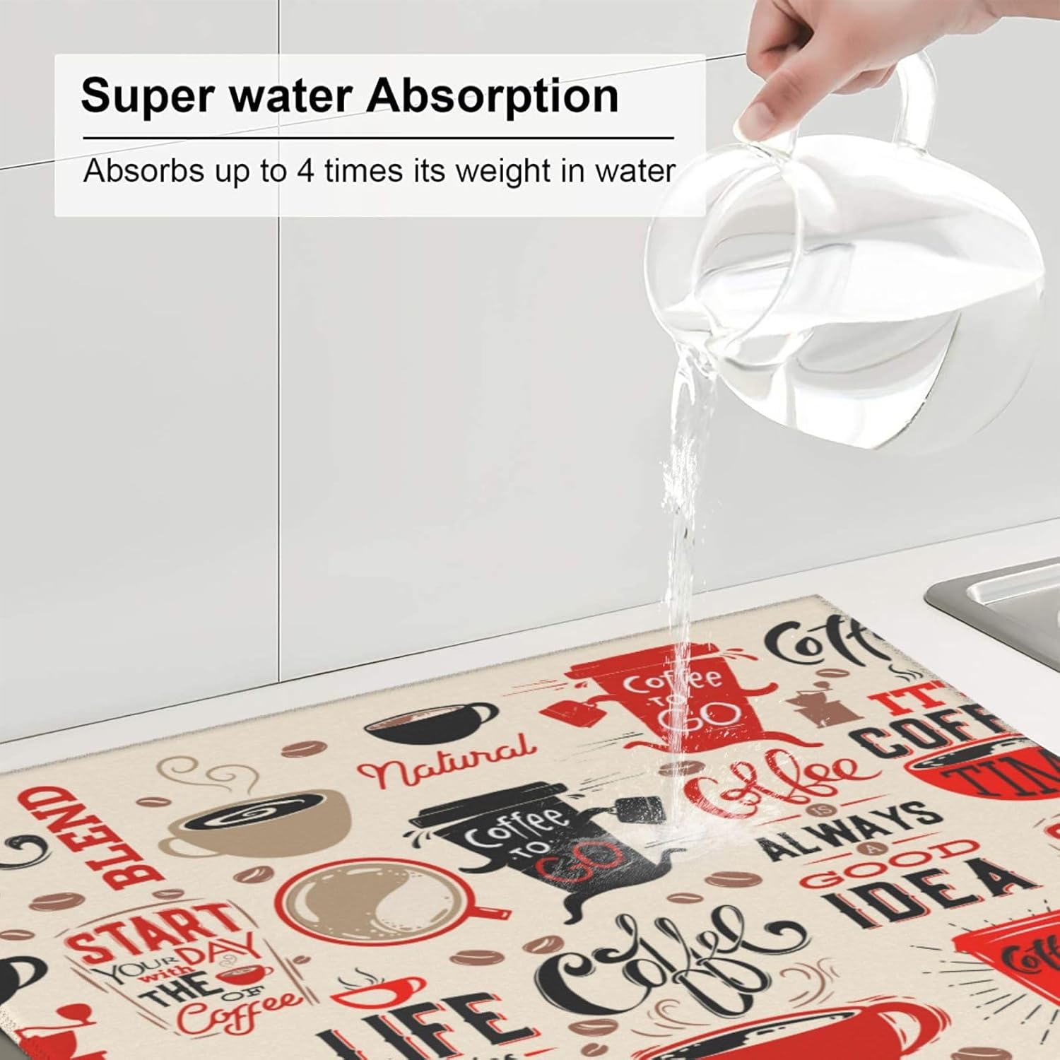 - Widely Used -- The Dish Drying Pad Can Be Placed Anywhere You Need To Absorb Water, Such As Can Be Used On Kitchen Counters, Countertops, Dining Table, Sinks, And Under Dish Racks, Coffee Makers, Coffee Machines, Coffee Pots, Espresso Machines, Coffee Cups, Water Dispensers, Blenders, Also As A Pet Food Mat, Place It Under Pet Drinking Pot To Keep The Floor Dry