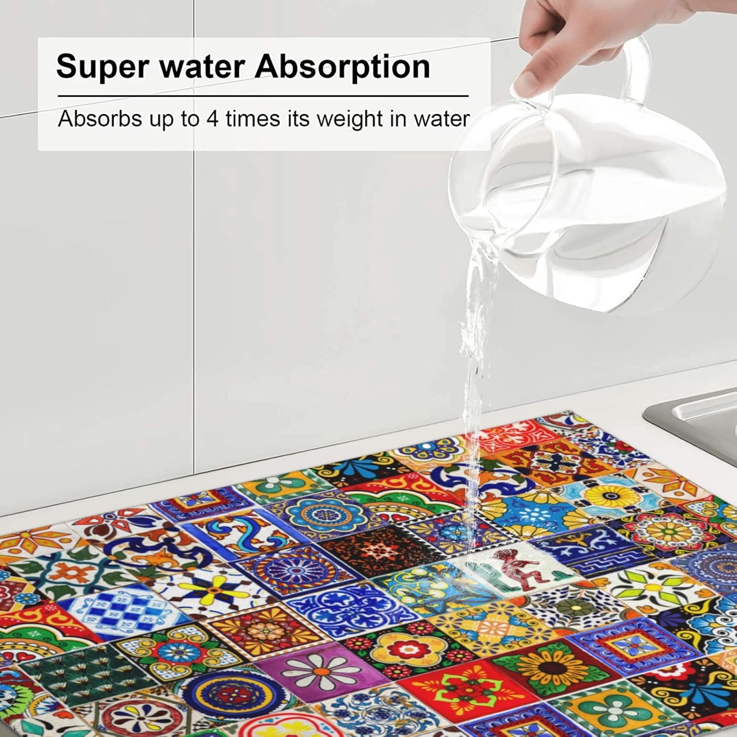 - Strongly Absorbent -- The Both Sides Of The Drying Mat Is Made Of Absorbent Ultra-Fine Fiber And The Middle Is Made Of Composite Sponge., Absorbs Four Times Its Weight In Water. Place Pots, Pans, Dishes And Glassware Directly On The Mat, It Can Also Dry Fruit After Cleaning. Our Drying Mat For Kitchen Counter Is Tear-Resistant And Long-Lasting, Offering Enduring Safeguarding For Your Tabletop