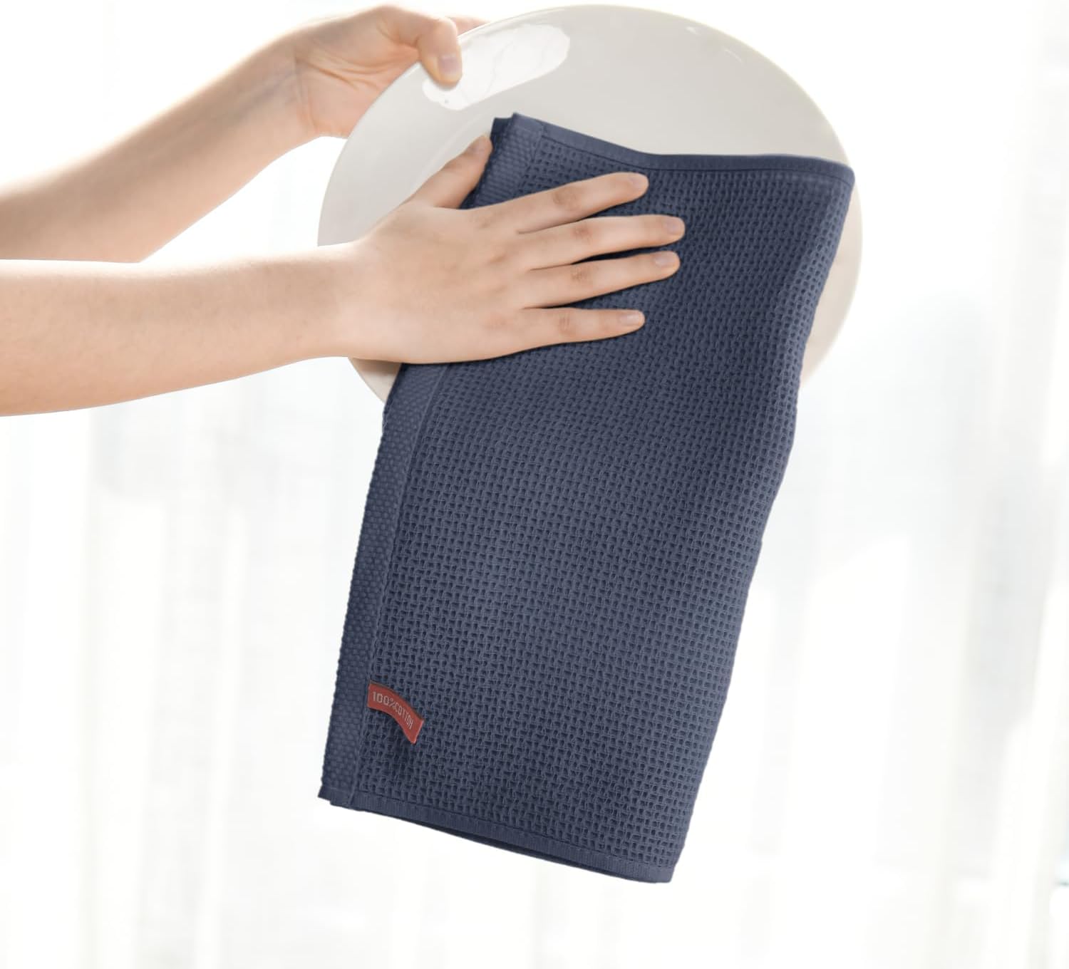 - COTTON DISH CLOTHS: 100% cotton waffle weave dishcloths that feel soft and comfortable. Unique honeycombs design make it have durability. And it softens with each wash, so these dish towels won't scratch your delicate cookware, plates and pans.