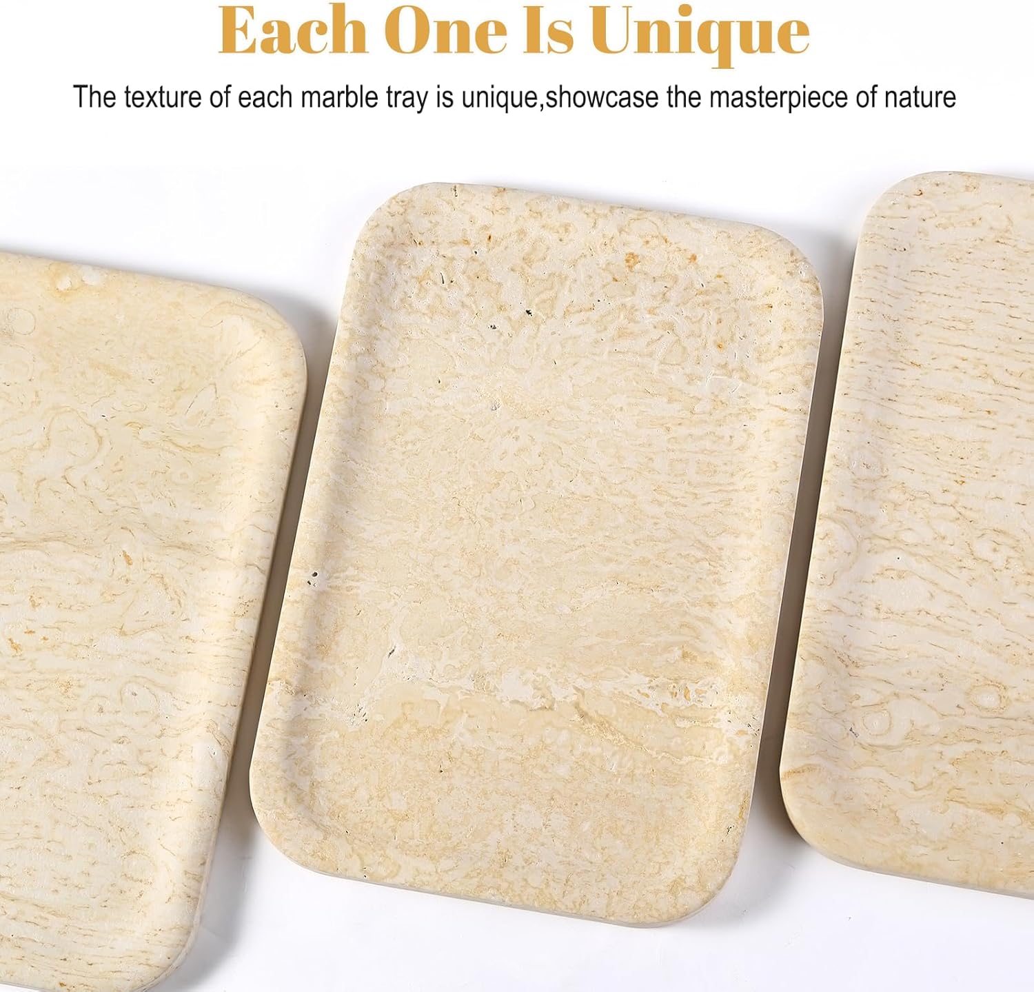 Koville Marble Tray, 12"x8" Marble Vanity Tray for Bathroom Kitchen Countertop, Rectangular Stone Tray for Cosmetics Perfume Trinket, Decorative Catchall Trays (Beige)