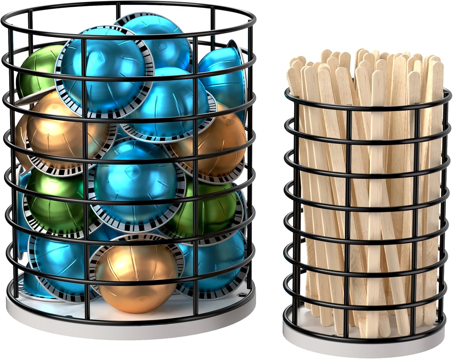 HBlife Coffee Pod Holder & Coffee Stirrers Holder Set, Metal Coffee Bar Accessories Large Capacity Kitchen Counter Decor for Keurig K cup & Nespresso Vertuo (Black Wire)