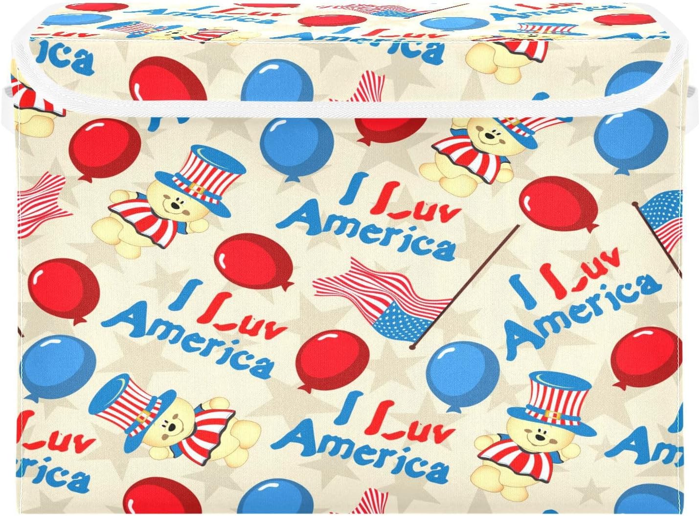 susiyo Classical American Pattern fabric storage baskets with lids,Collapsible Storage Boxes,Foldable storage boxes with handles for Home,Office,Closet Organization