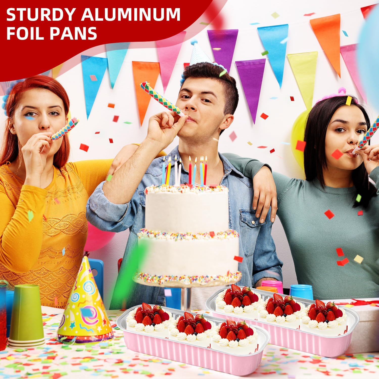 30 Pack Pink Disposable Rectangular Aluminum Foil Loaf Pans with Lids,6.8oz Mini Cake Pans for Baking, Loaf Baking Pans, Small Cake Container