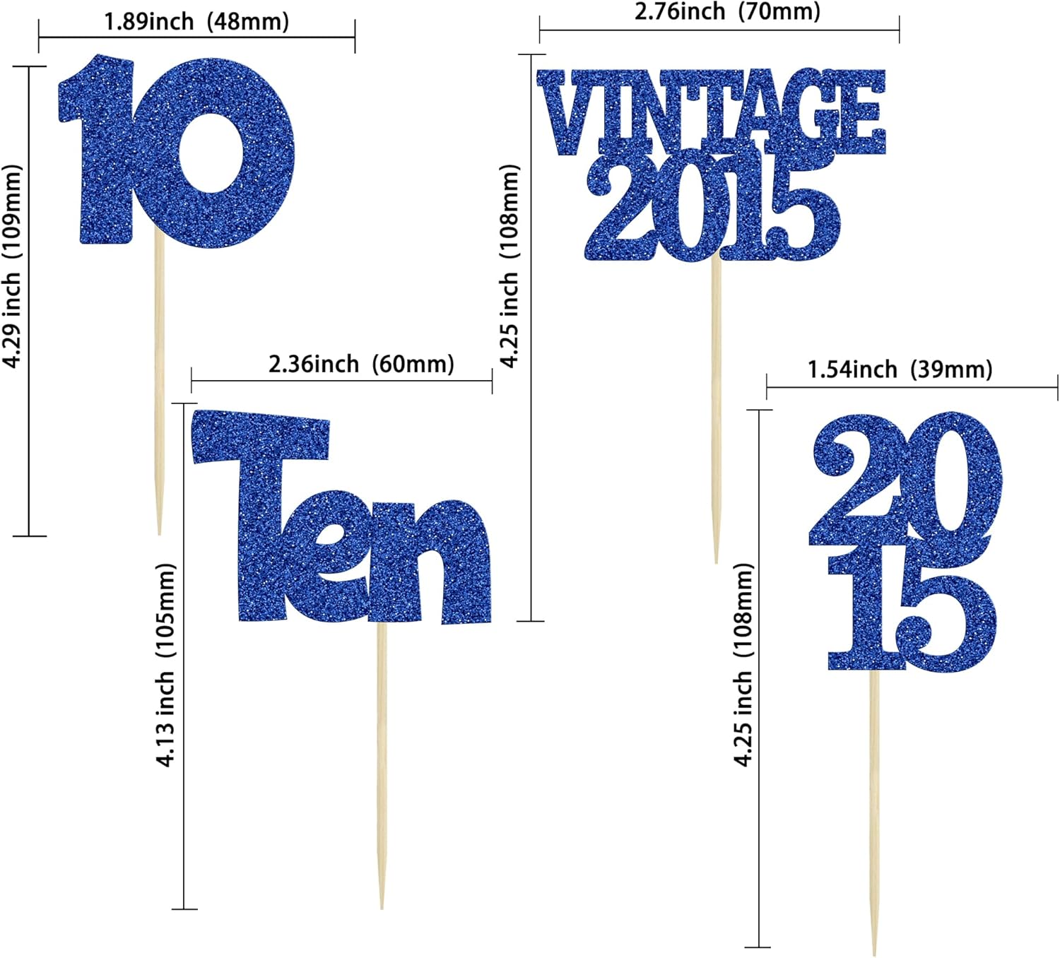 Gyufise 24Pcs 10th Birthday Cupcake Toppers Glitter Ten Vintage 2015 Double Digits 10 Cupcake Picks Birthday Cake Decorations for Happy 10th Birthday Anniversary Party Supplies Deep Blue