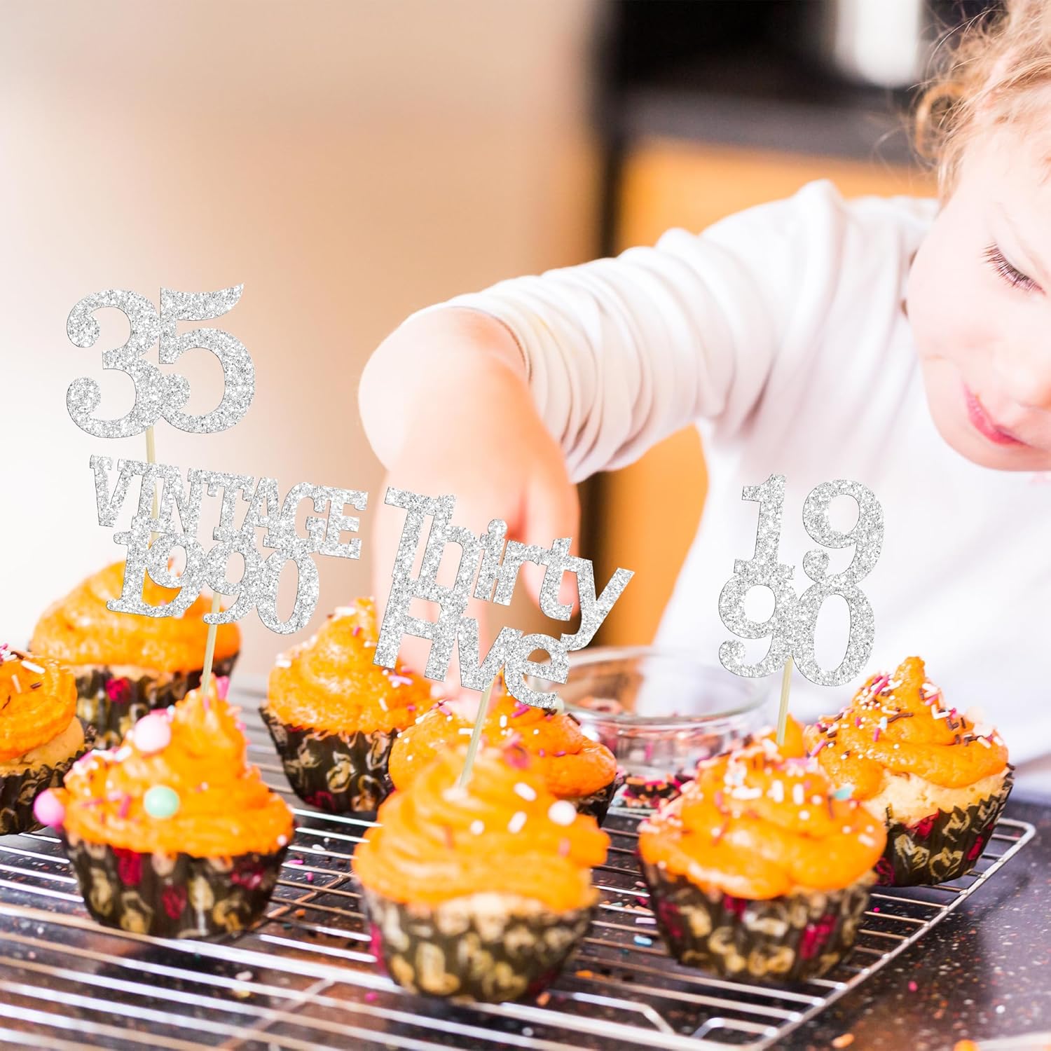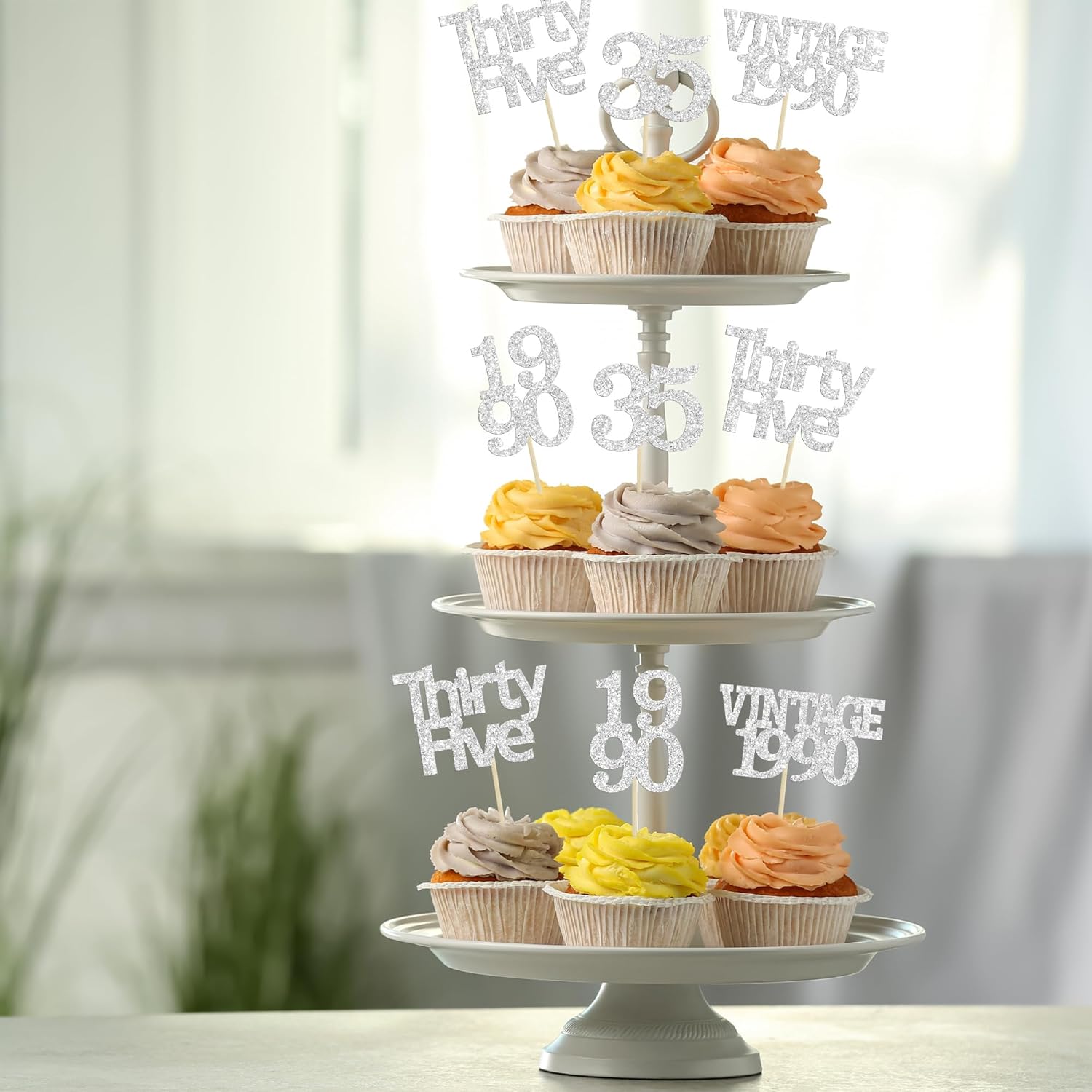- Package included: 24Pcs 35th Birthday Cupcake Toppers. Comes with assembled, so you can insert into your cake directly, which make your cake more interesting.