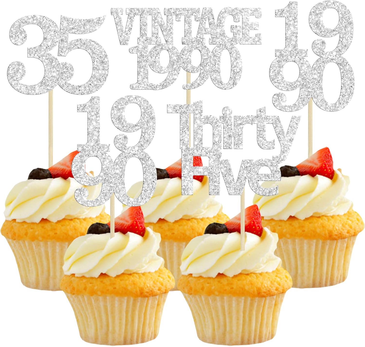 - 35th Birthday Cupcake Toppers are so cute and good for 35th birthday party, 35th wedding anniversary party, 35th birthday cupcake decorations.They can make your cupcake more attractive and bring the fun to your party. You can also apply them for ice cream, fruits, cookies and other desserts.