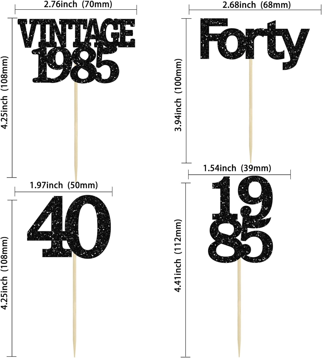 Gyufise 24Pcs Vintage 1980 Cupcake Toppers Glitter Cheers to 45 Fabulous Forty Five Cupcake Picks 45th Birthday Wedding Anniversary Party Cake Decorations Supplies Black