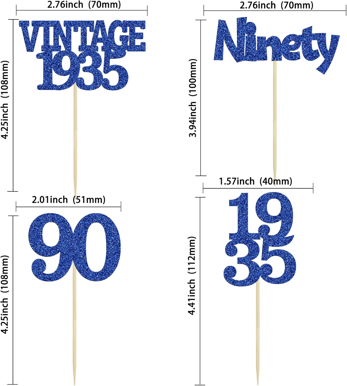- Package included: 24Pcs 90th Birthday Cupcake Toppers. Comes with assembled, so you can insert into your cake directly, which make your cake more interesting.