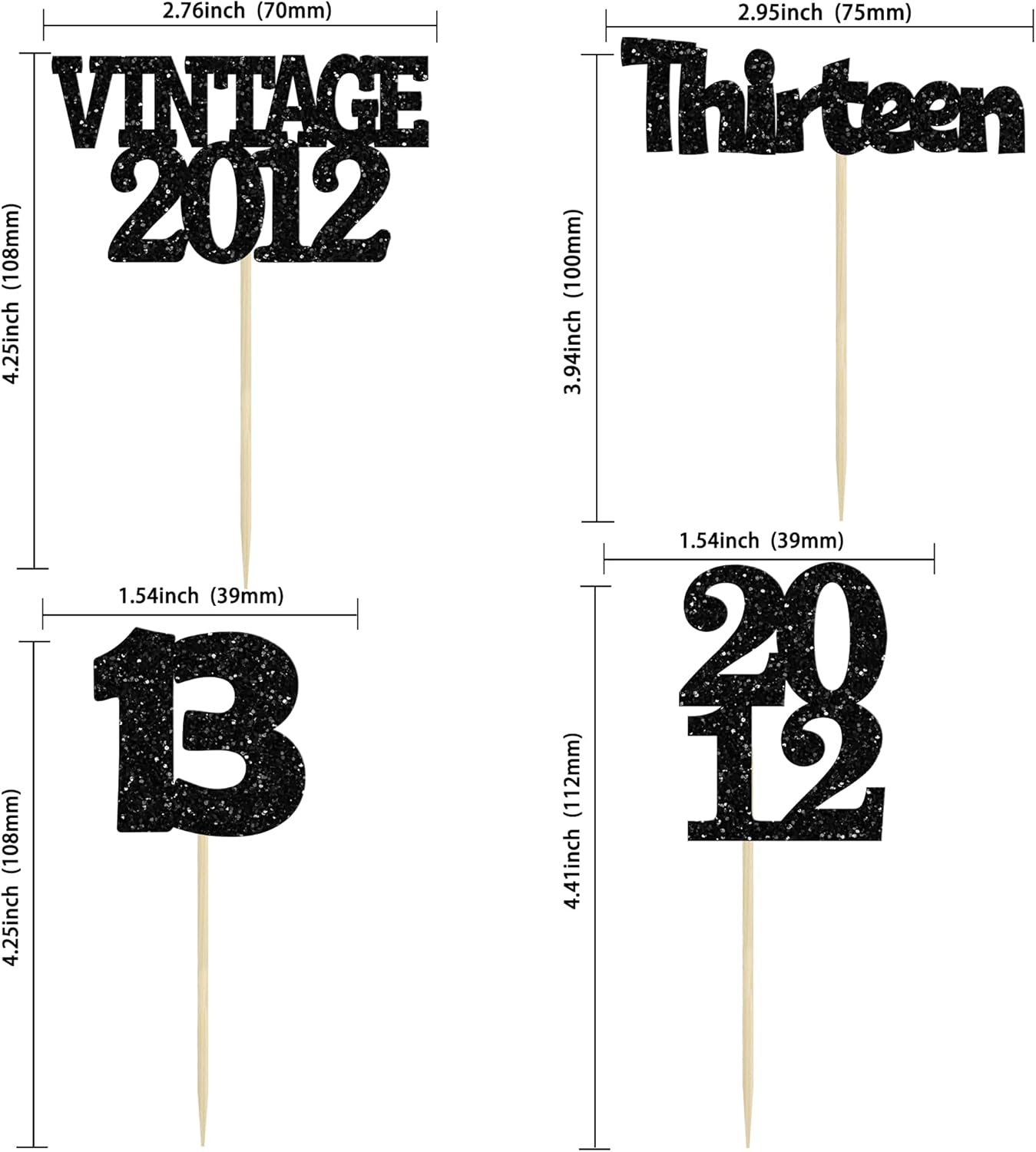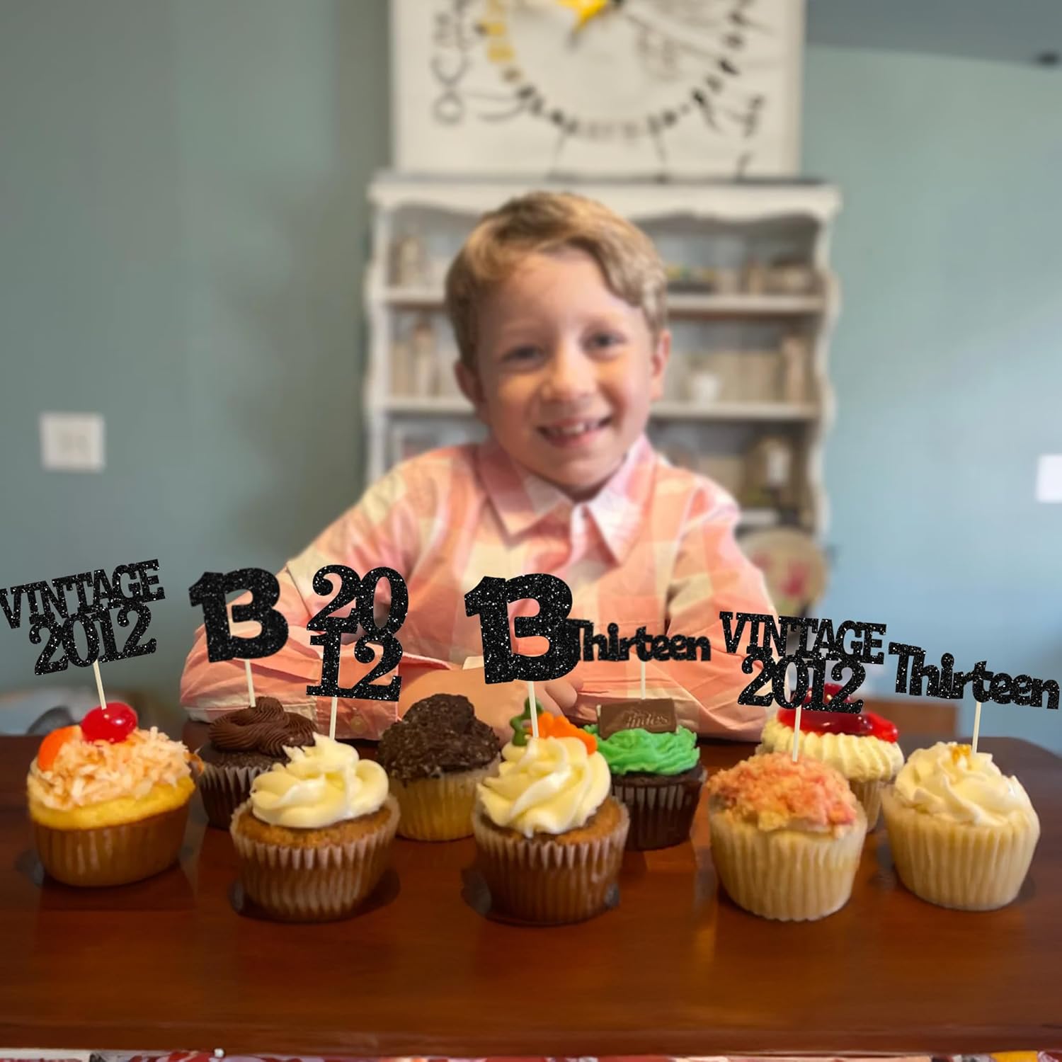 Gyufise 24Pcs 13th Birthday Cupcake Toppers Glitter Thirteen Vintage 2012 Official Teenager 13 Cupcake Picks 13 Years Birthday Cake Decorations for Happy 13th Anniversary Party Supplies Black