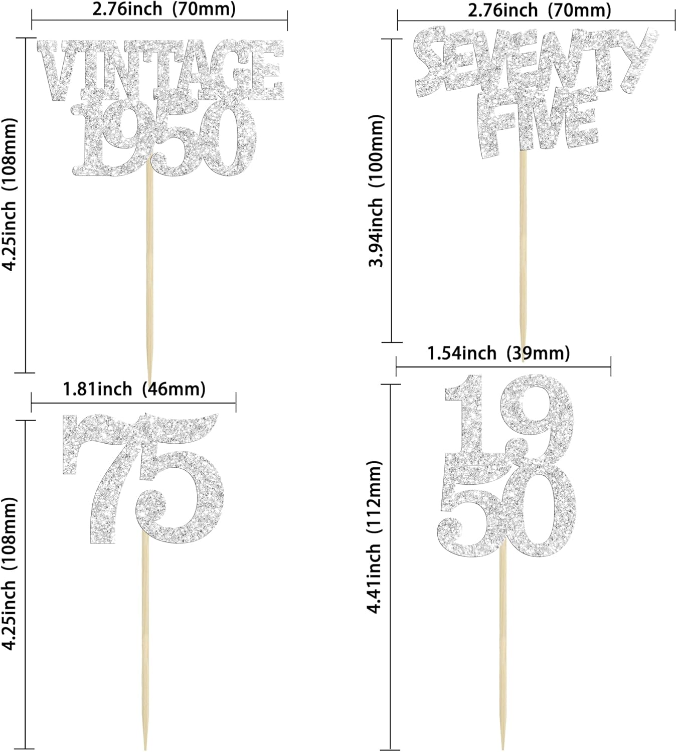 Gyufise 24Pcs 75th Birthday Cupcake Toppers Glitter Cheers to 75 Fabulous Seventy Five Vintage 1950 Cupcake Picks 75th Birthday Wedding Anniversary Party Cake Decorations Supplies Silver