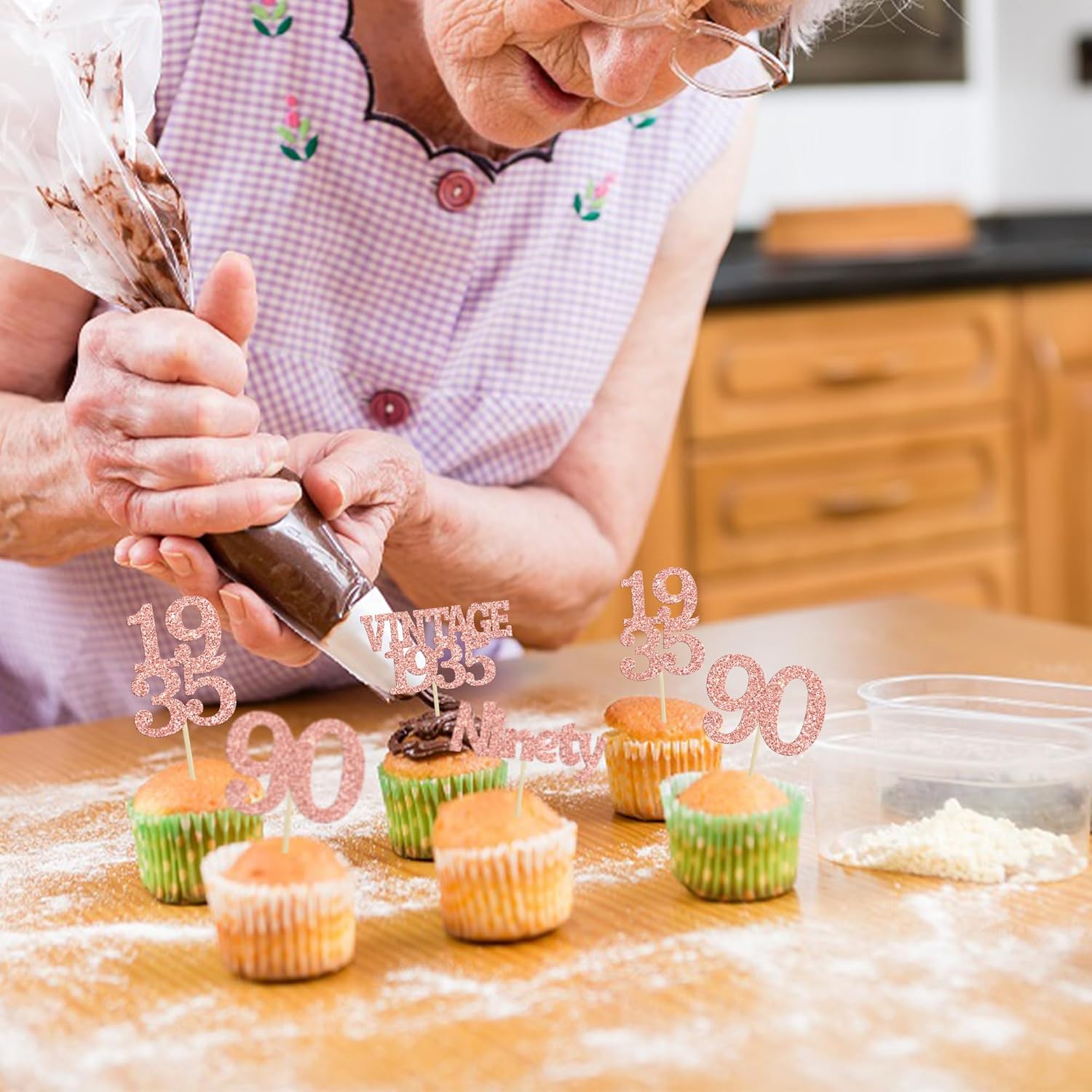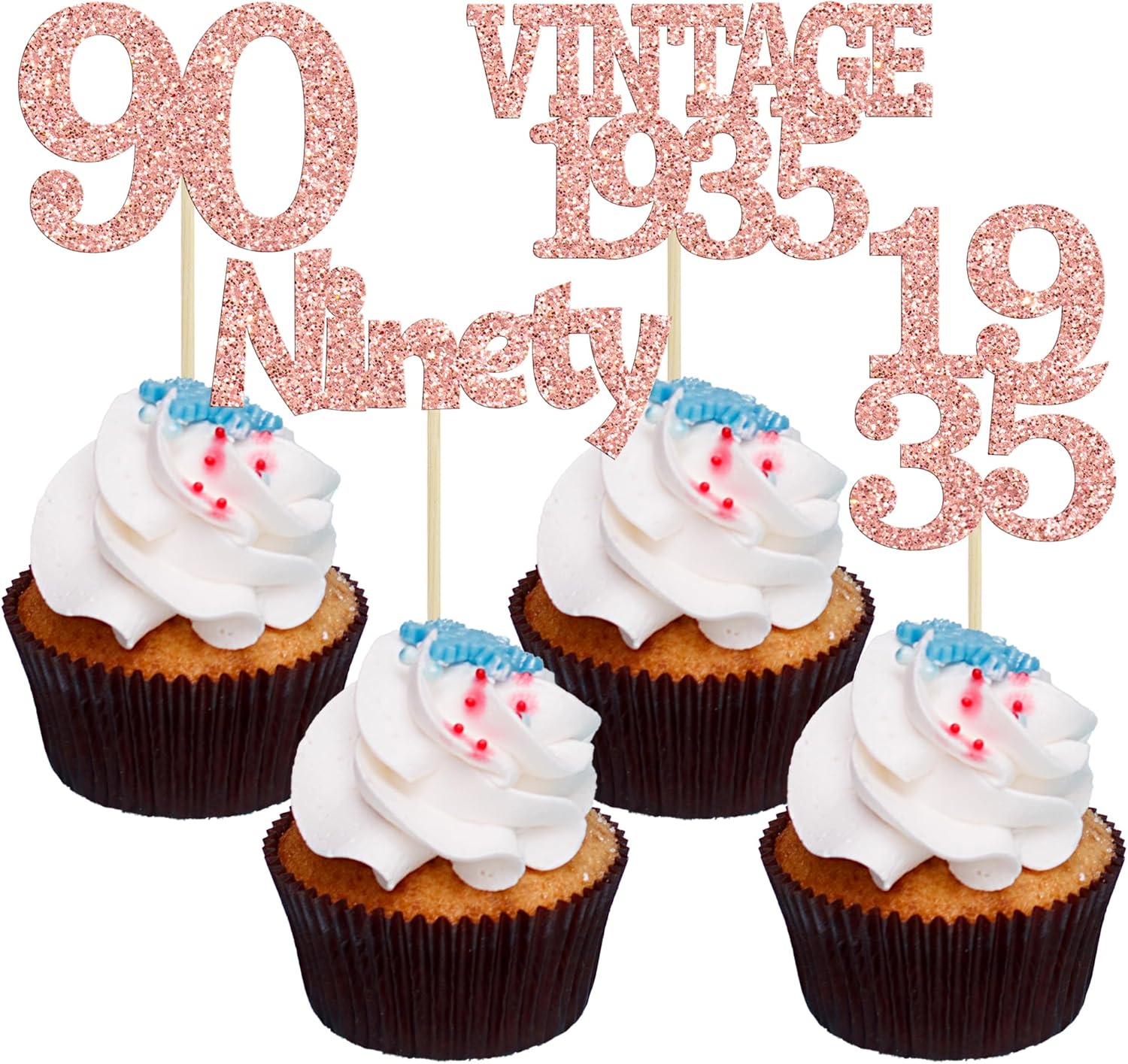 - Package included: 24Pcs 90th Birthday Cupcake Toppers. Comes with assembled, so you can insert into your cake directly, which make your cake more interesting.