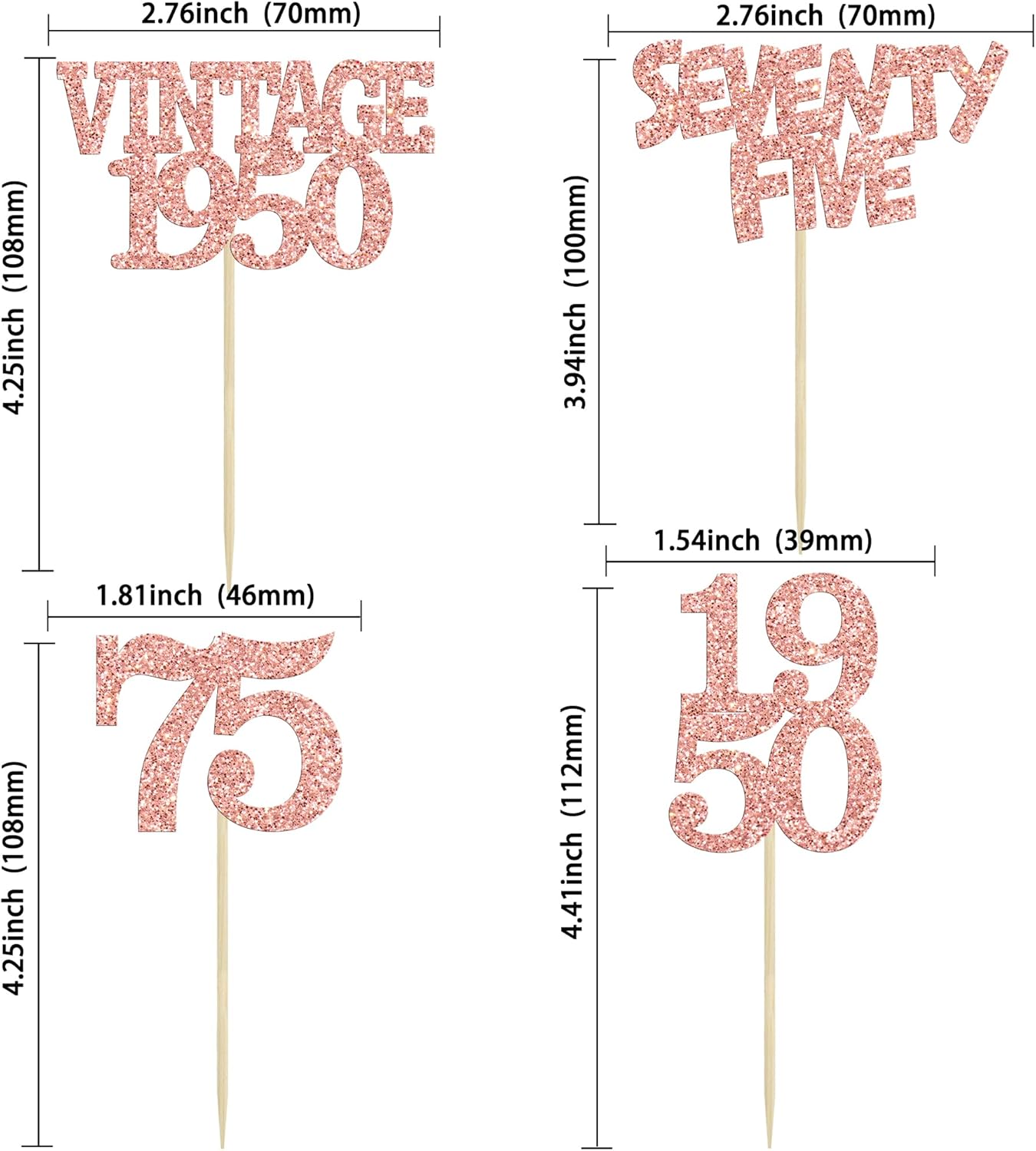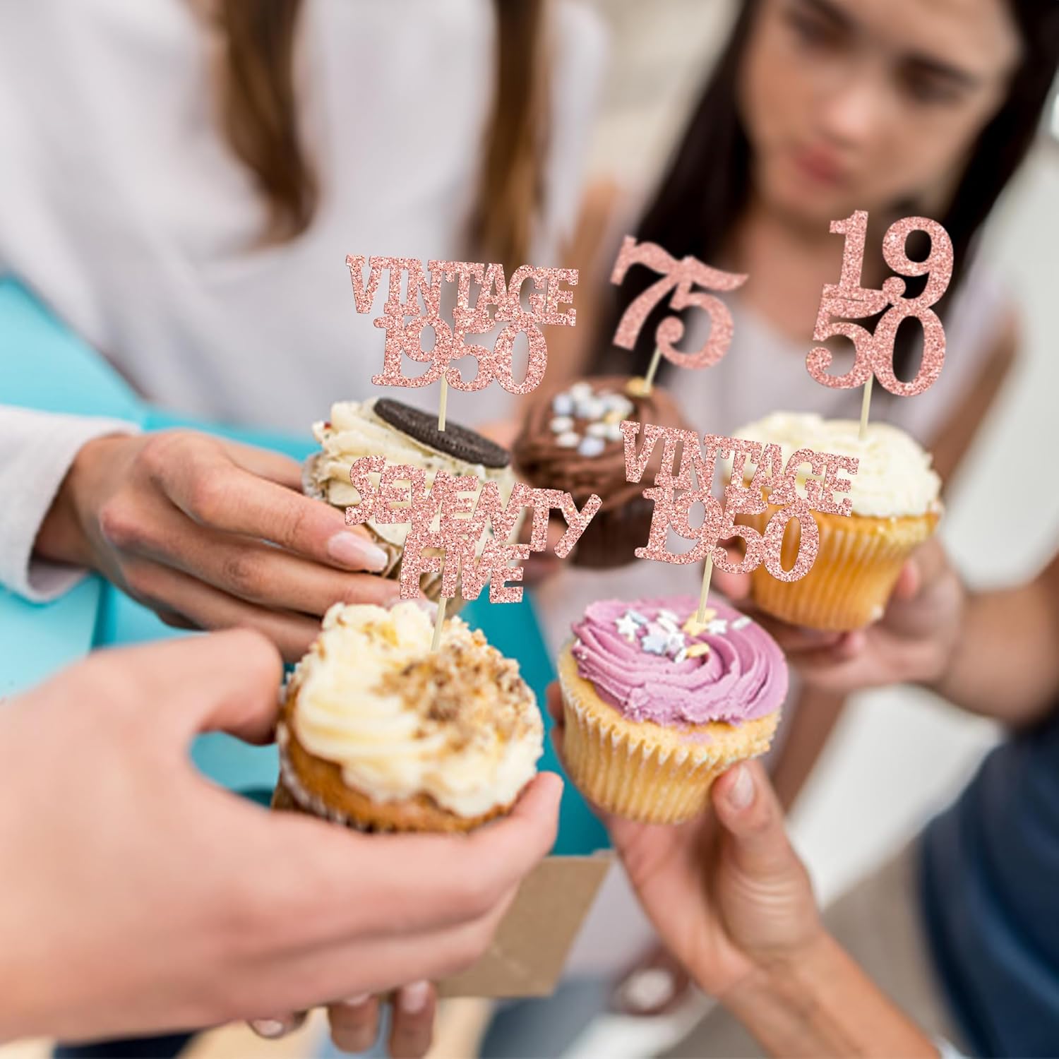 Gyufise 24Pcs 75th Birthday Cupcake Toppers Glitter Cheers to 75 Fabulous Seventy Five Vintage 1950 Cupcake Picks 75th Birthday Wedding Anniversary Party Cake Decorations Supplies Rose Gold