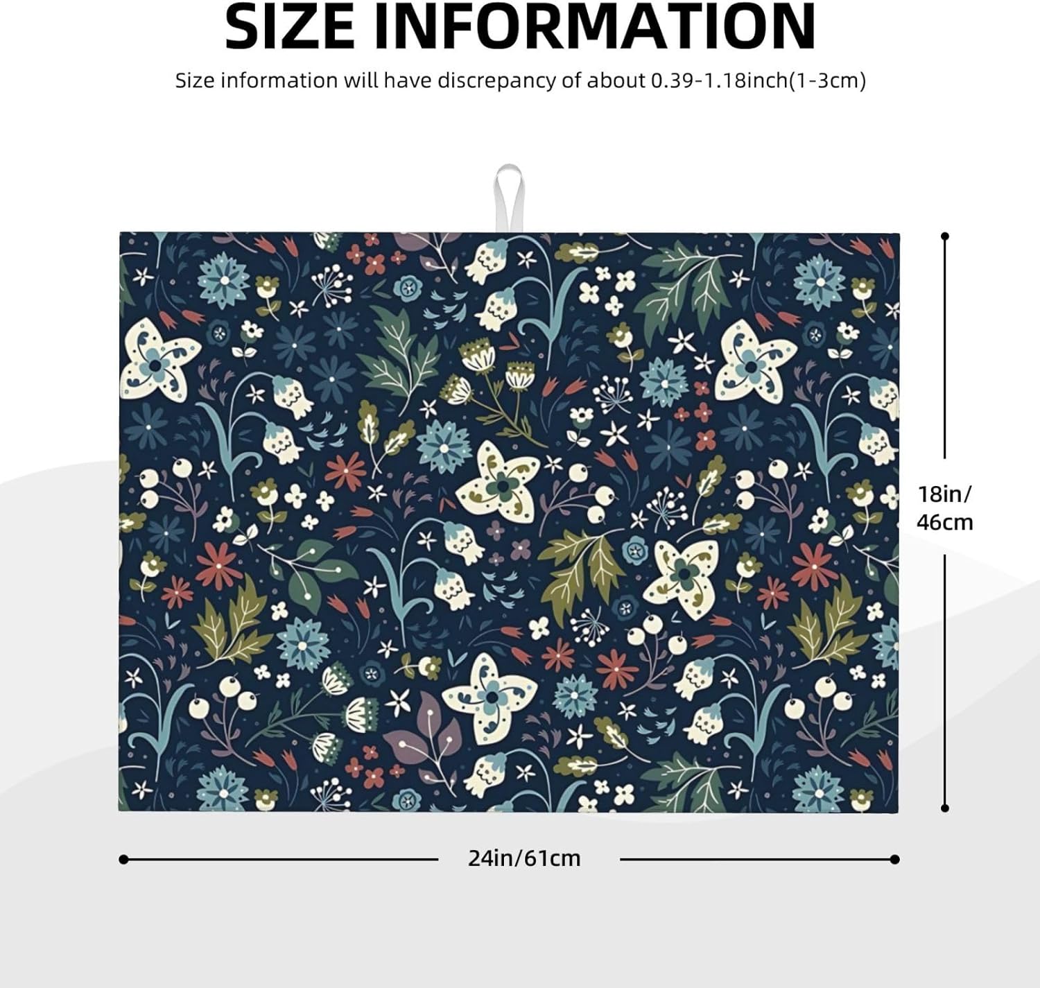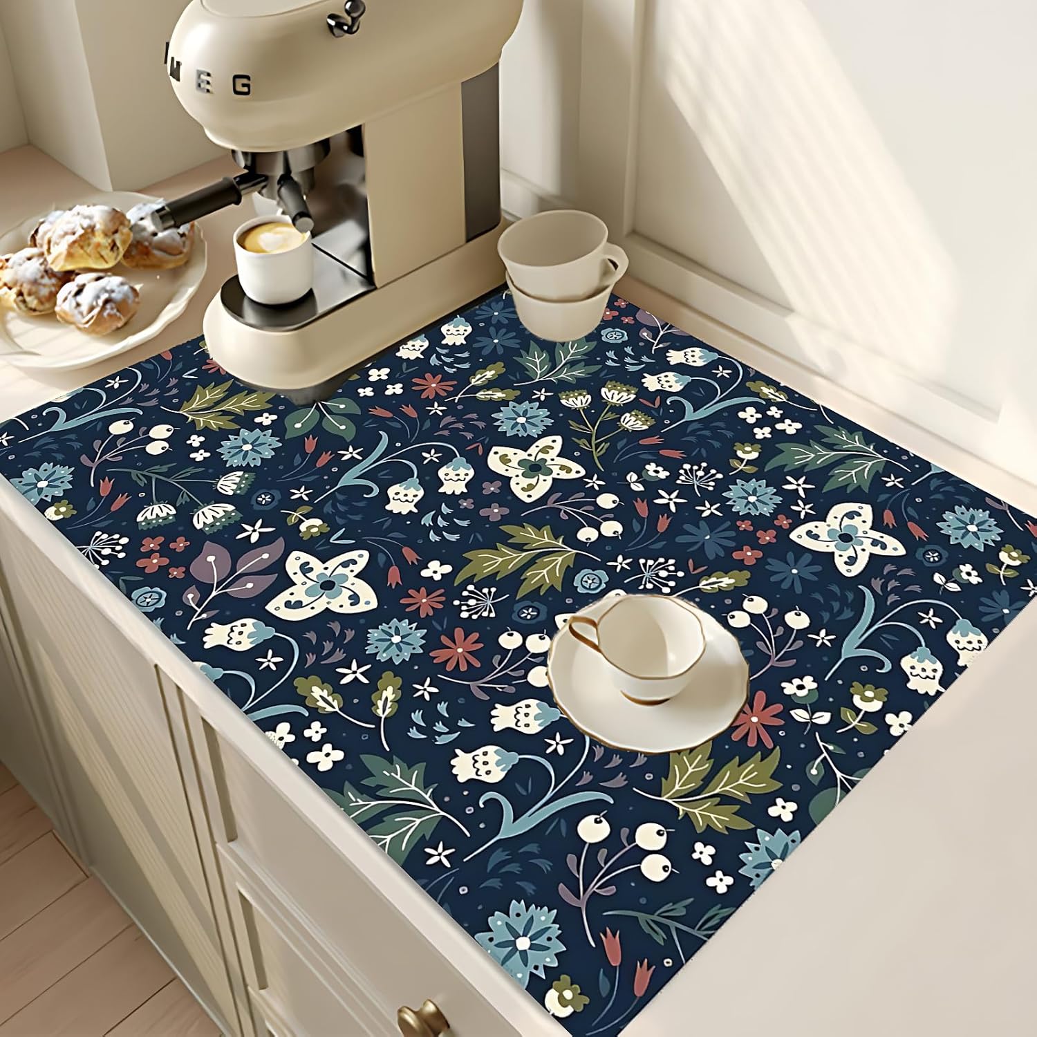 2Pcs Dish Drying Mats Faucet Mats Sets Large Size Coffee Mats Sink Faucet Mat Splash Guard for Kitchen Counter Bathroom Sink Coffee Bar Kitchen Decor (Cute Wildflowers, 18"x24" 15" x 5.5"Set)