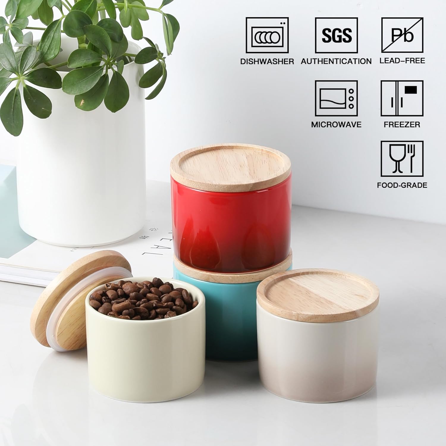 Sweejar Kitchen Canisters Ceramic Food Storage Jar, Stackable Containers with Airtight Seal Wooden Lid for Serving Ground Coffee, Tea, Sugar, Spice and More - 5 Fl Oz(Gradient Blue)