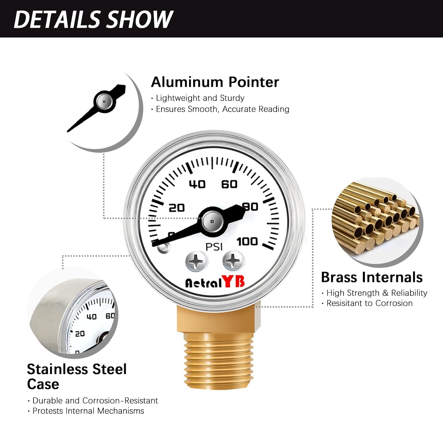 - PSI-Only Scale for Quick and Accurate Readings: The PSI-only scale simplifies monitoring, ensuring this mini pressure gauge delivers precise pressure readings for espresso machines, air compressors, and other compact devices.