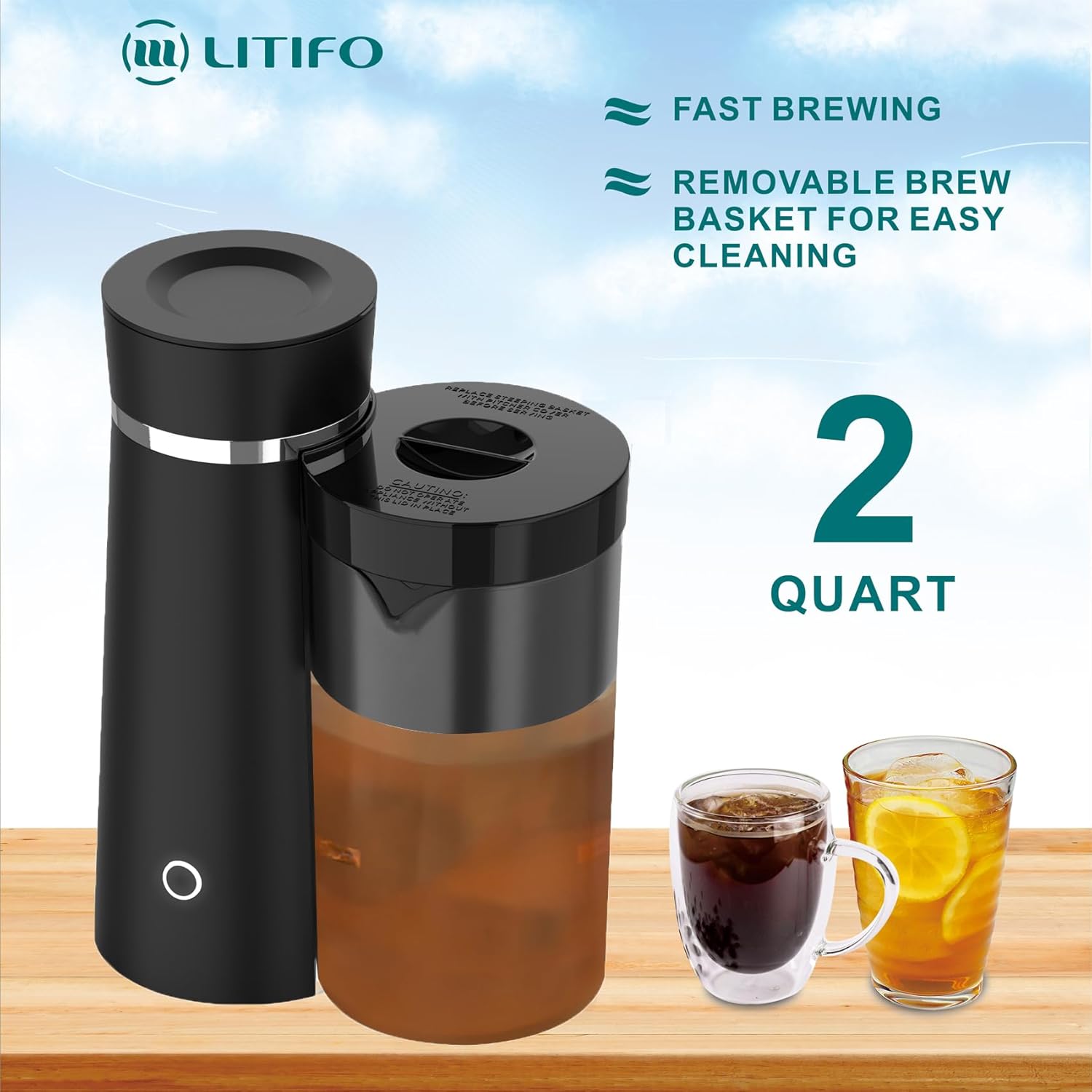 Iced Tea Maker and Iced Coffee Maker Brewing System with 2-quart Pitcher, Perfect For Fruit Infused Tea, Lemonade, Flavored Water (Black)
