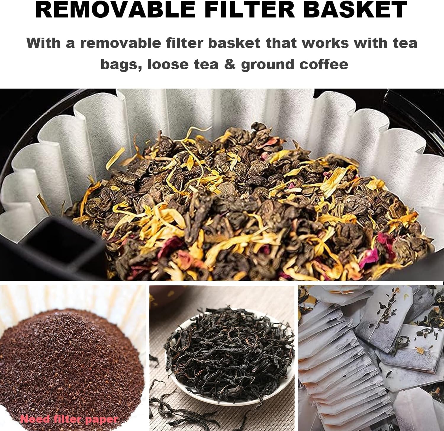 - 【Removable Brew Basket】The removable basket works with fresh ground coffee, tea bags and loose leaf teas, while the shower head is designed for complete saturation and optimal flavor extraction.