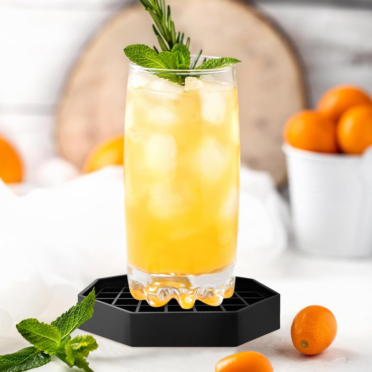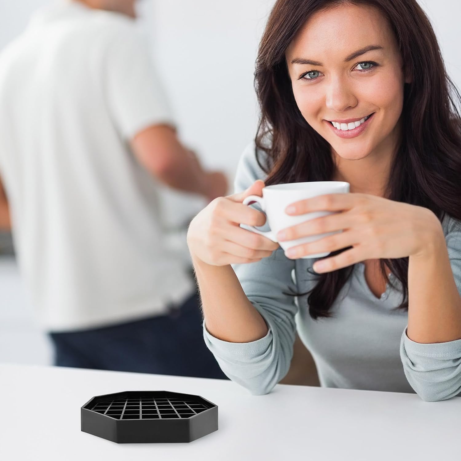 2 Pcs 4 Inch Drip Tray Coffee Countertop Tray Black Plastic Spill Octagon Drip Coaster with Honeycomb Grid for Drink Tea Wine Beverage