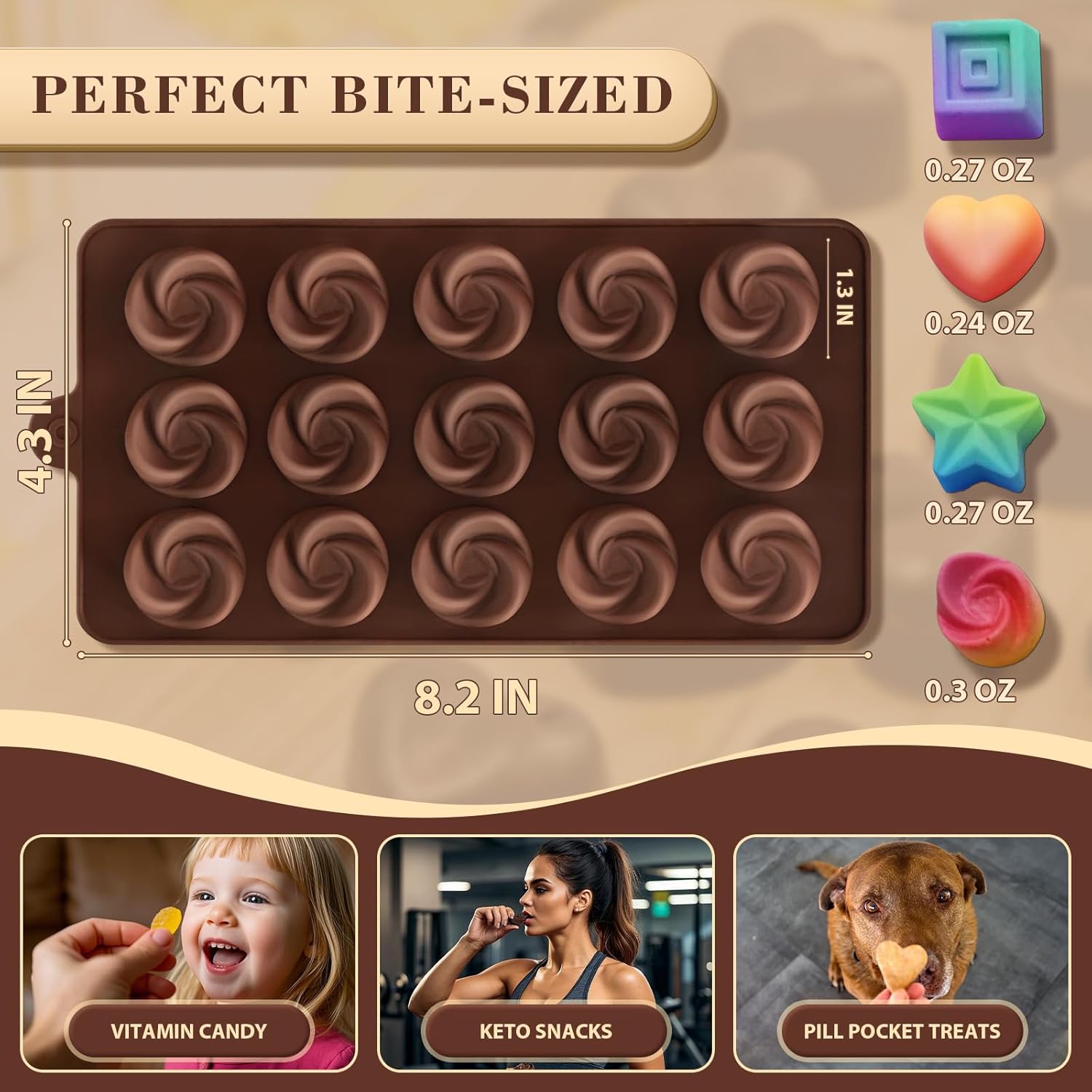 - Elevate Your Creations with Variety: Unleash your creativity with HKNMTT 4-Shaped Chocolate Silicone Molds. Craft exquisite chocolates, candies, and butter with 4 unique silicone molds. Each mold boasts 15 cavities, allowing you to create up to 60 candies at 4 stunning designs in one go