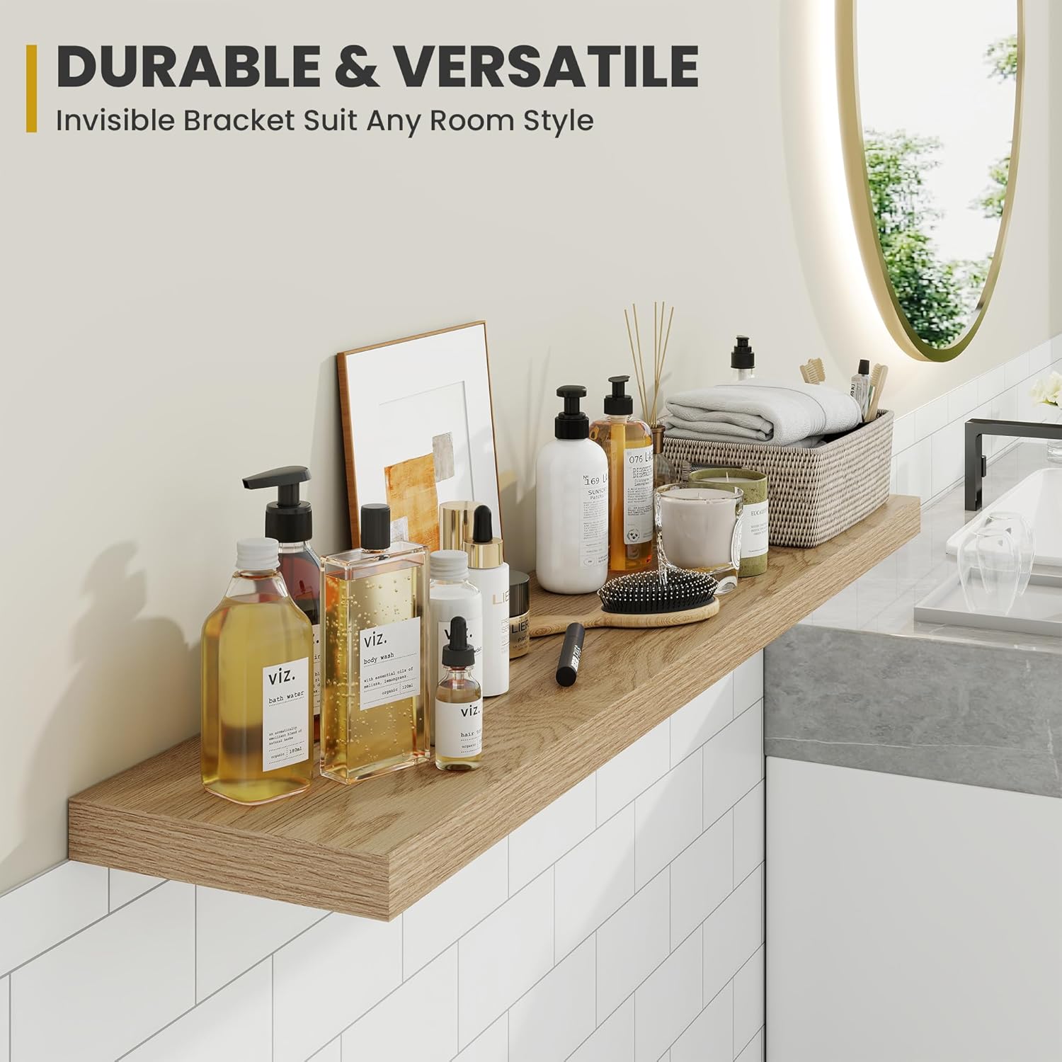 - [ROBUST & SECURE MOUNTING]: Equipped with a sturdy, hidden mounting bracket, these 48-inch floating shelves ensure solid support for your items. Designed for easy and secure installation, they come with all necessary hardware for a firm, wobble-free setup, allowing you to confidently display decor, photos, or functional items with style.