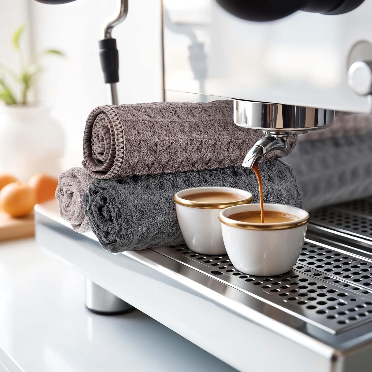 - ⭐ Multipurpose Cleaning Solution: Ideal for cleaning coffee bar countertops, tampers, steam wands, portafilters and mugs. These towels are also suitable as tea towels or dish towels.