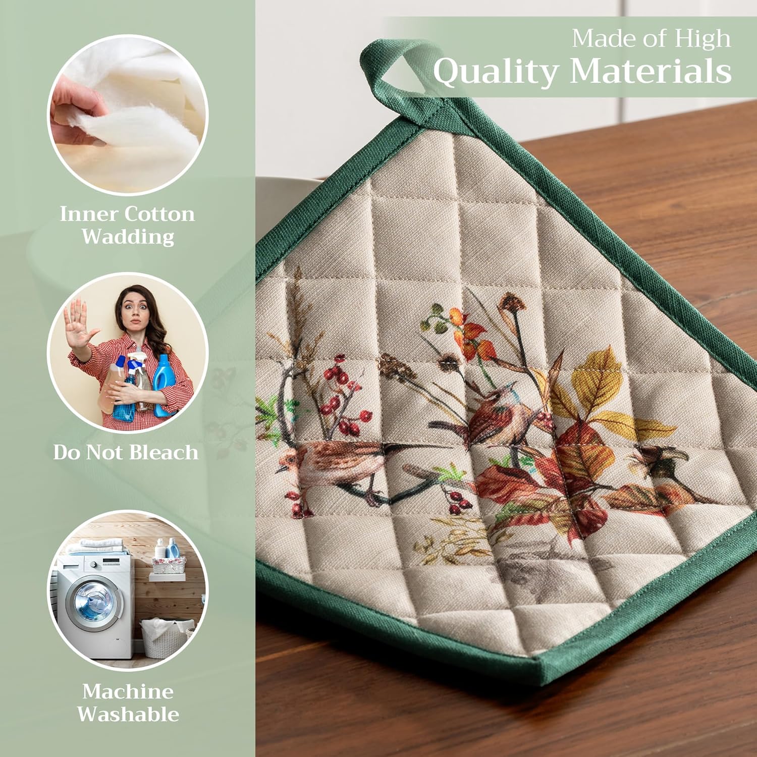 Maison d' Hermine Pot Holders 100% Cotton Heat Resistant Potholders 8" x 8" Hot Pads with Loop BBQ, Cooking, Baking, Grilling, Kitchen, Handling Hot Pans (Pack of 1, Recolte)