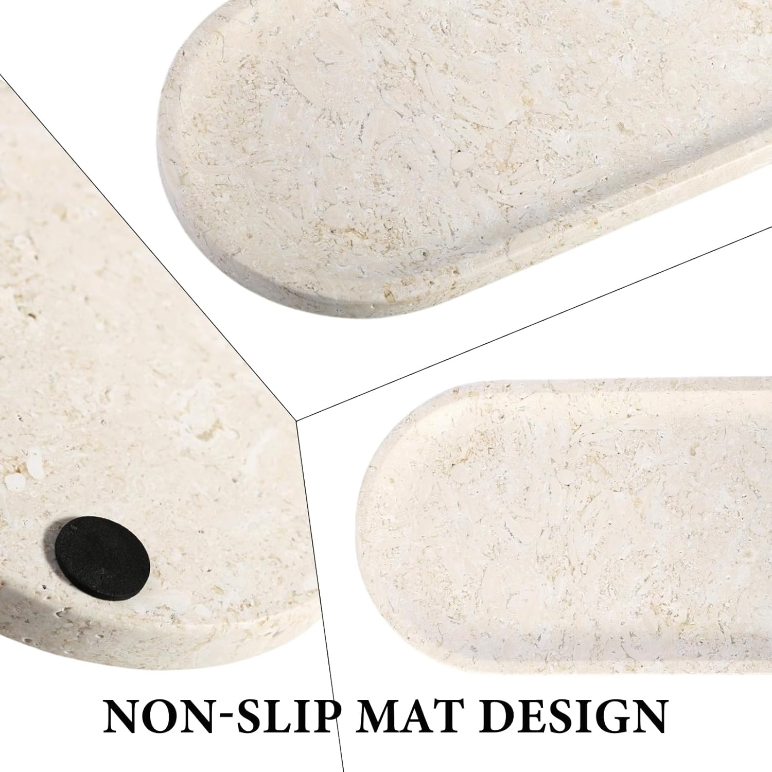 Koville Marble Tray for Bathroom Countertop, 12"x6" Beige Marble Vanity Storage Trays for Perfume, Cosmetics, Jewelry, Stone Tray for Kitchen, Decorative Trays for Dresser Organizer