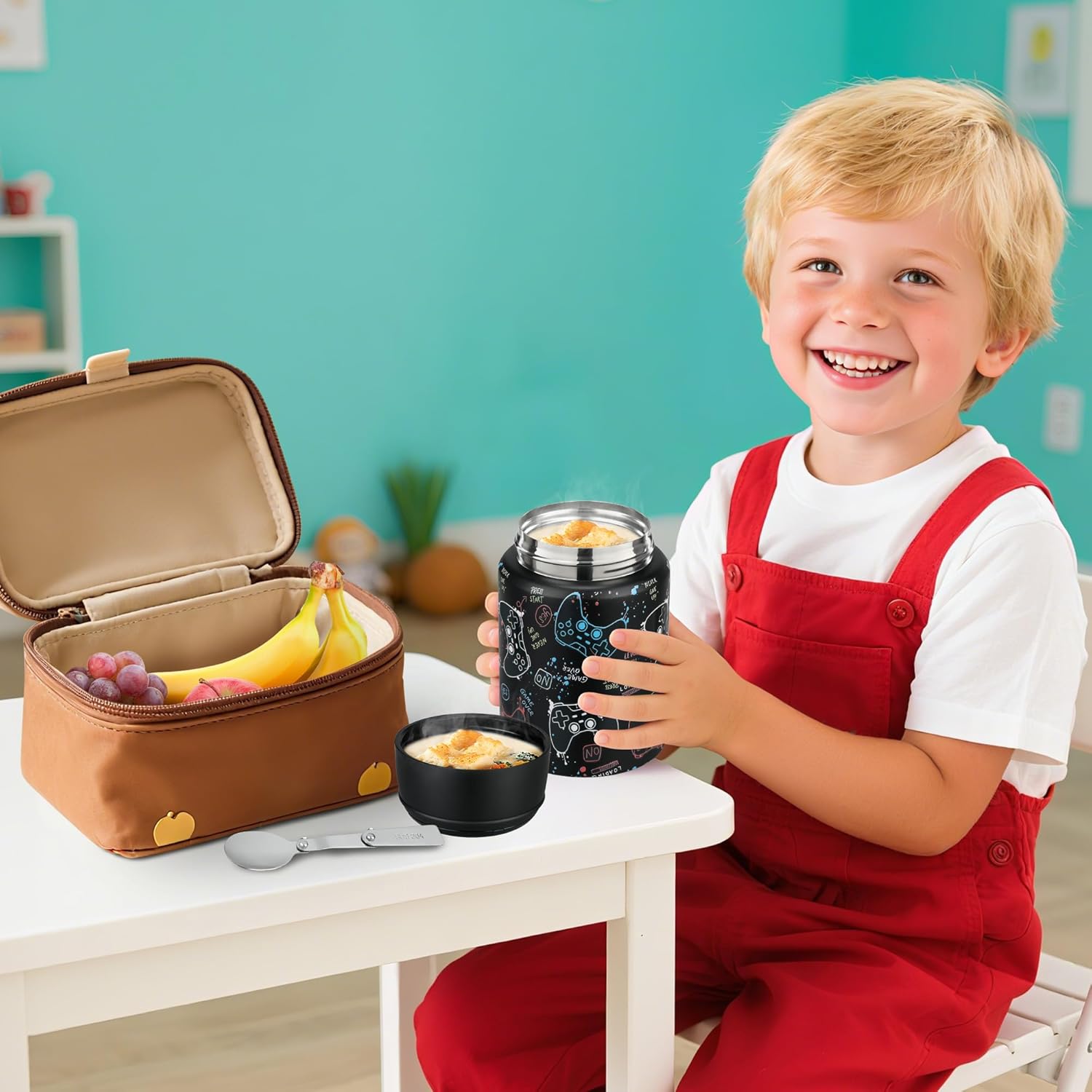 - FOOD-GRADE SAFETY & CPC CERTIFIED - The inside of kids thermo food container is made of high quality 316 stainless steel. Fully compliant with CPC standards to ensure child safe material. Double-layer vacuum insulation design, open lid venting for safe steam release. Durable, care for children's health.