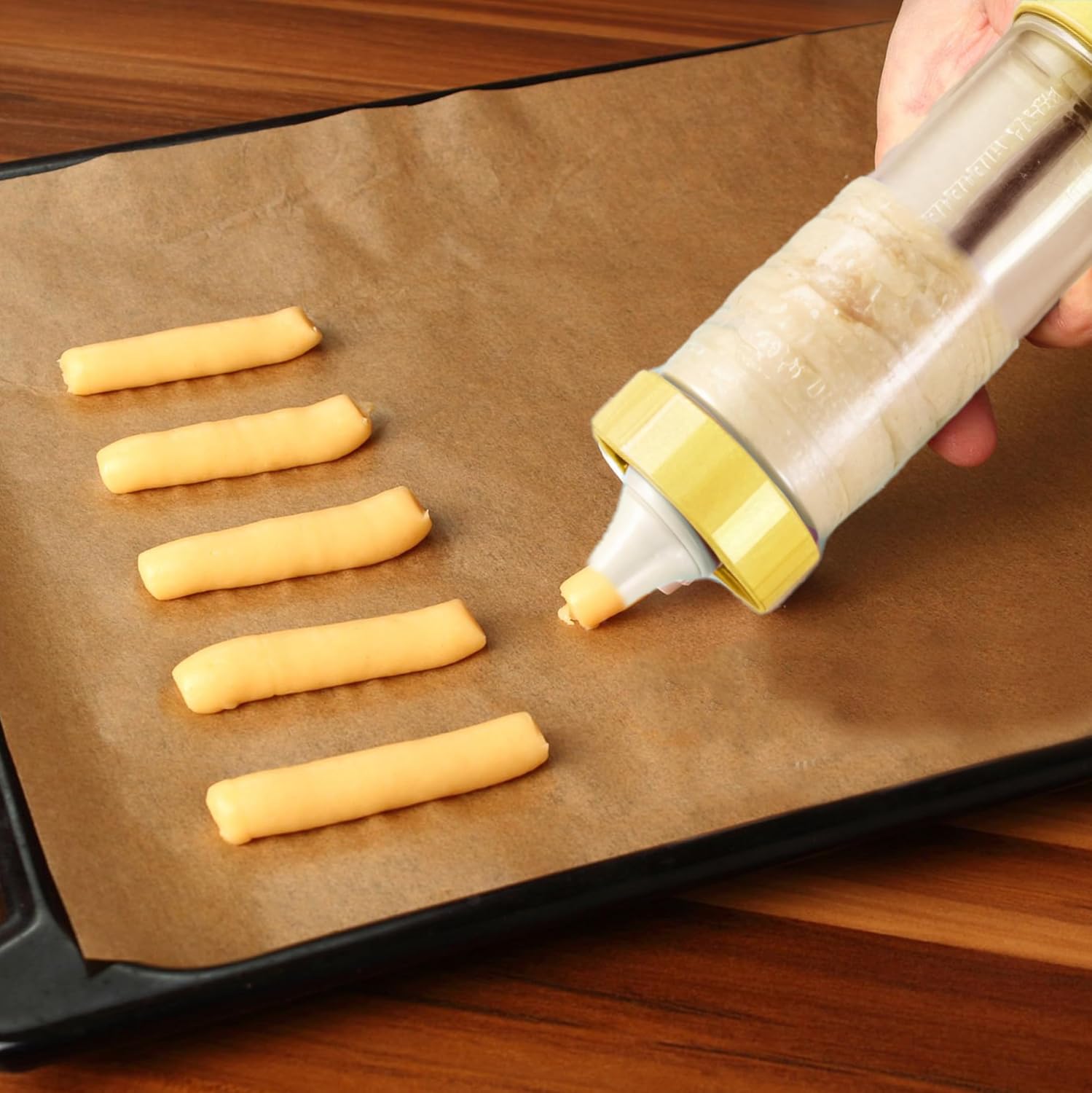 - Quality Cookie Press Gun Kit: This kit includes a cookie press gun, 6 icing nozzles, and 16 different shapes of cookie press discs—everything you need for everyday cookie making and dessert decorating.