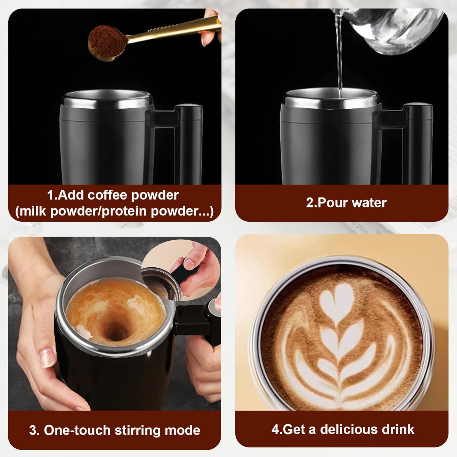 - 【Easy to Clean】The detachable magnetic stirrer and wide opening make this coffee mug with stirrer simple to clean. Made with food-grade ABS and 304 stainless steel, the automatic stirring mug is leak-proof, durable, and safe for daily use. Rinse easily under running water, but avoid using a dishwasher or soaking the self mixing coffee mug fully in water