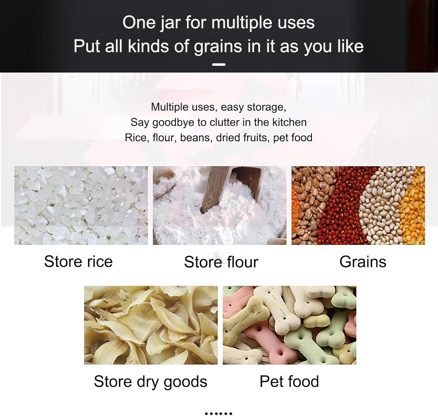 - 【Large-capacity grain container】: This large-capacity grain container is perfect for those who like to cook and need to store a lot of ingredients. It can hold a large amount of rice, grains or other dry food. The wide opening makes it easy to fill and pour