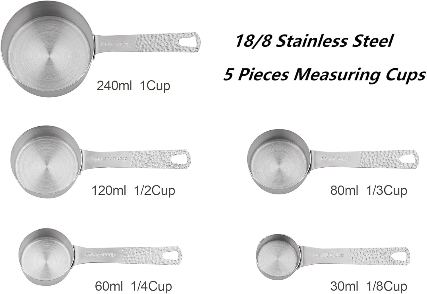 - ▲▲ENGRAVED MEASURING MARKINGS – Every stainless steel measuring cups and spoons in this set has the accurate measurements size in US and Metric engraved on the handle clearly, what will help you reduce any measuring errors for cooking or baking!