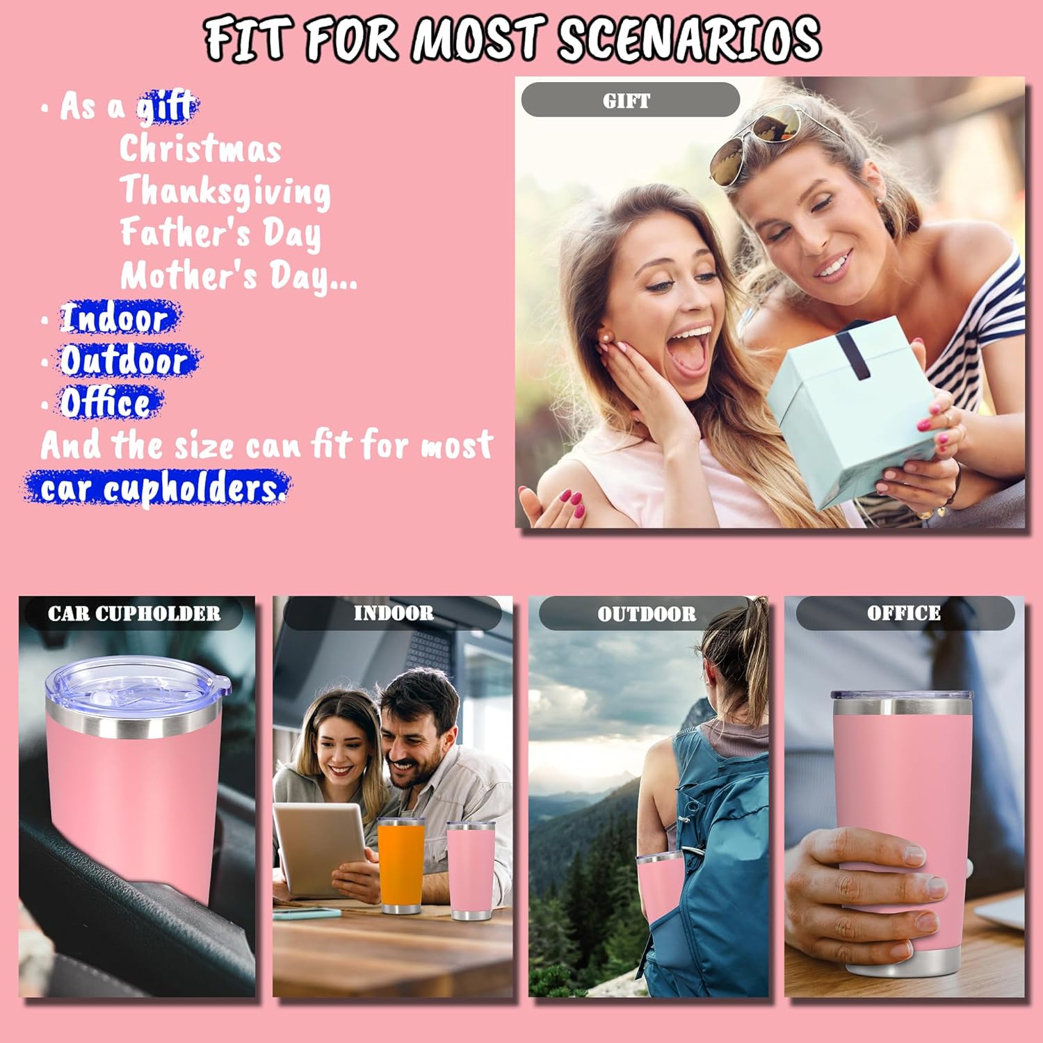 - SIZE & FITS CAR CUPHOLDER - The capacity of the tumbler is 20 oz and the smooth design of the tumbler body makes it suitable for most car cupholders. In addition, the tumbler can also be easily held