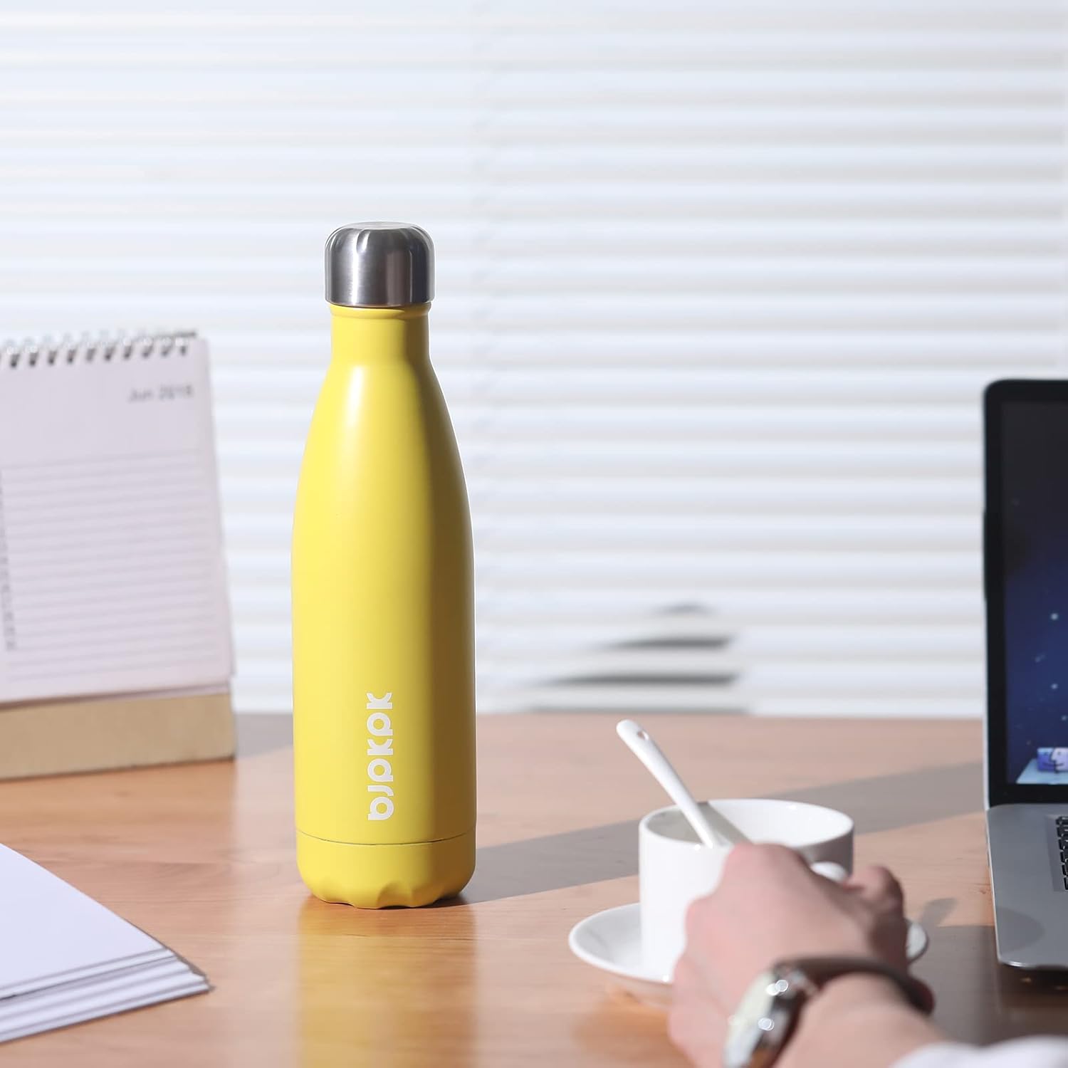 BJPKPK Insulated Water Bottles -17oz/500ml -Stainless Steel Water bottles, Sports water bottles Keep cold for 24 Hours and hot for 12 Hours,BPA Free water bottle,White (Pack of 2)