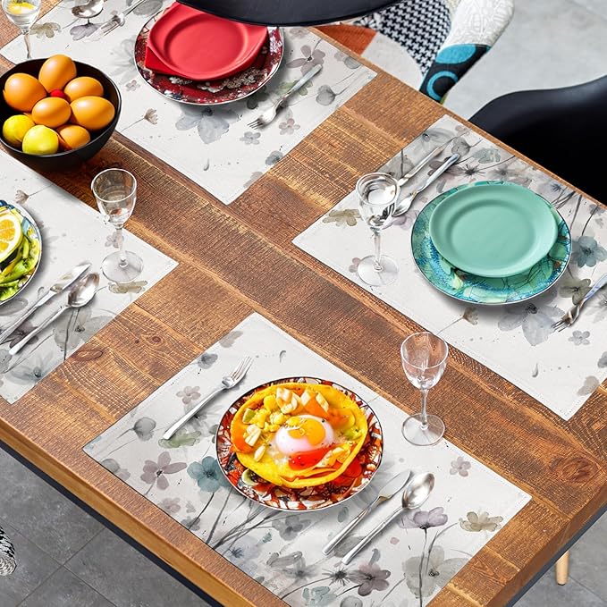 - TABLE DECORATION: Watercolor floral table place mats feature high-definition printing technology for crisp, clear patterns and vibrant colors; rectangle placemats with a beautiful flowers pattern; unique and eye-catching seasonal patterns add charm to purple flower place mat, creating a spring and summer atmosphere for your party