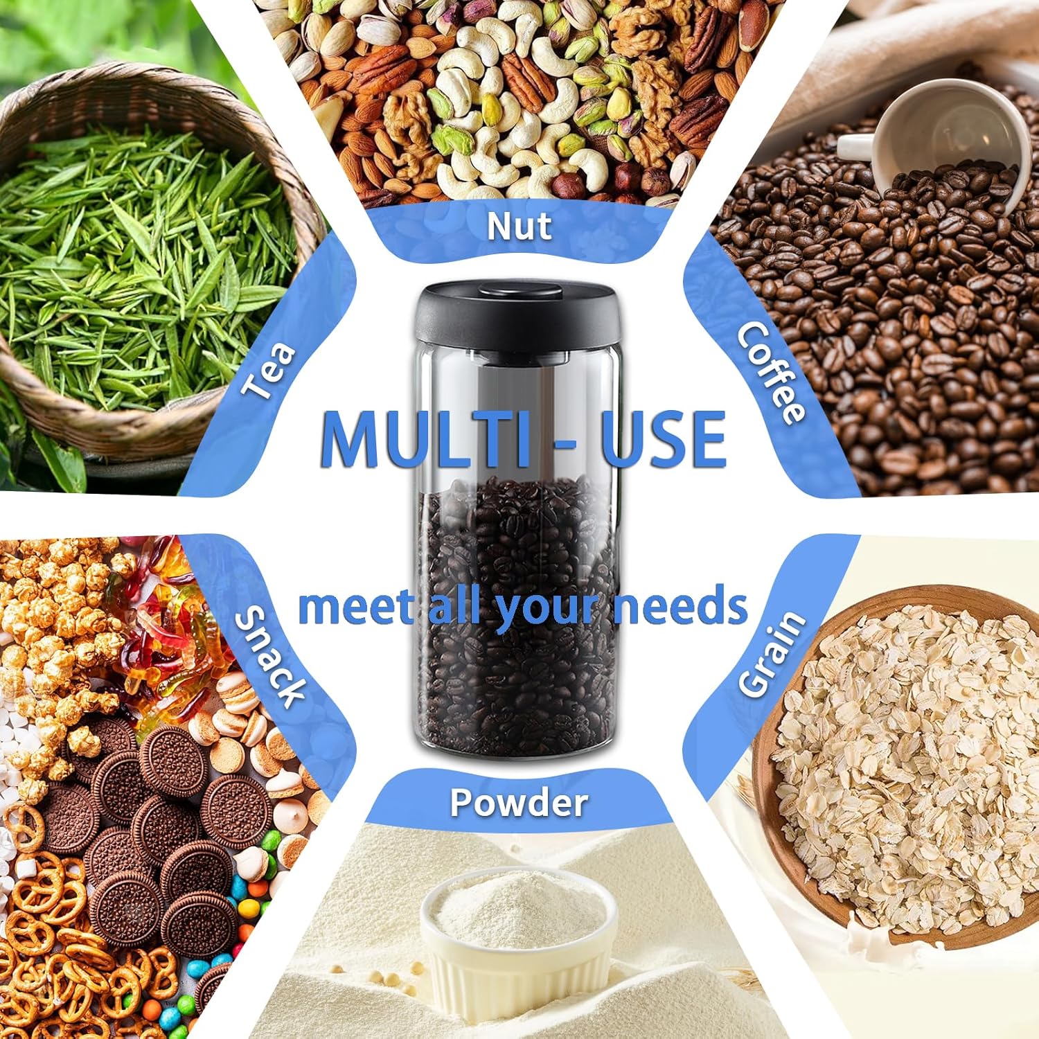 - ✅Effortless Operation and Cleaning: Coffee vacuum canister has a push-down air pump, eliminating the need for batteries or a vacuum sealer. Just one minute of pressing can keep your coffee fresh for an entire week! It is recommended to pump out the air once a week. The wide opening design makes it convenient to take out food and clean. Make your family more worry free!
