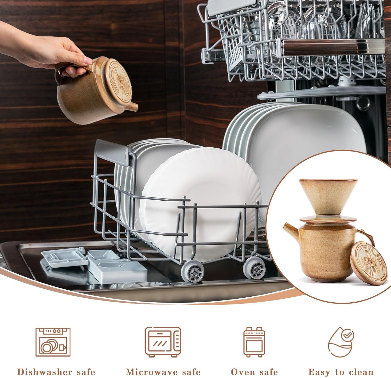 - PERFECT CHOICE:Pour over coffee dripper includes 27 oz ceramic pot x 1,ceramic lid x 1,ceramic coffee dripper x 1,paper filter x 20,suitable for homes, offices and coffee shops. the beautiful coffee maker set packed in a safe package,is a good choice present for your family and friends.