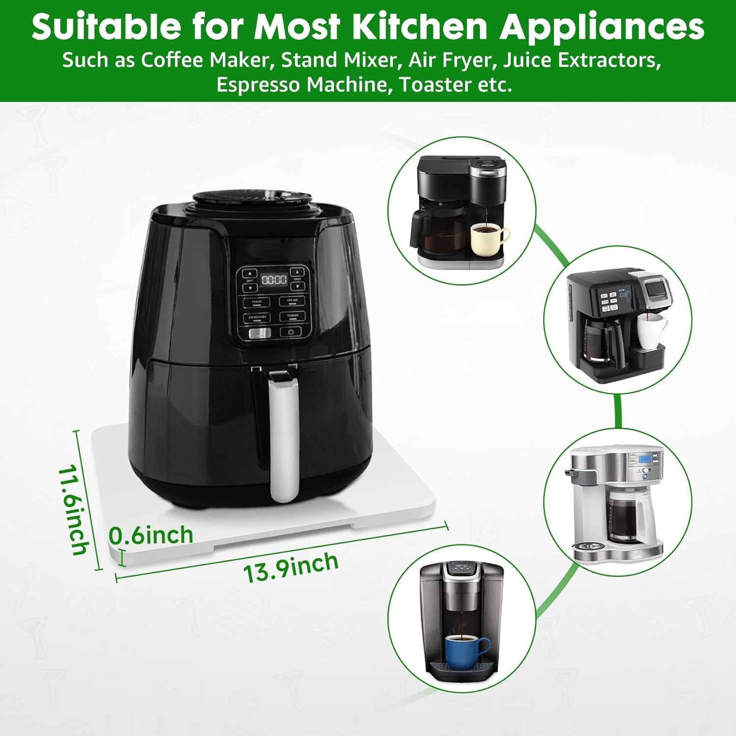 - 【Multi-functional Sliding Tray】Slider size 13.9 "W x 11.6 "L x 0.6 "D, suitable for Keurig K-Mini, Ninja,small coffee makers, espresso machines, air fryers, toasters and stand mixers.