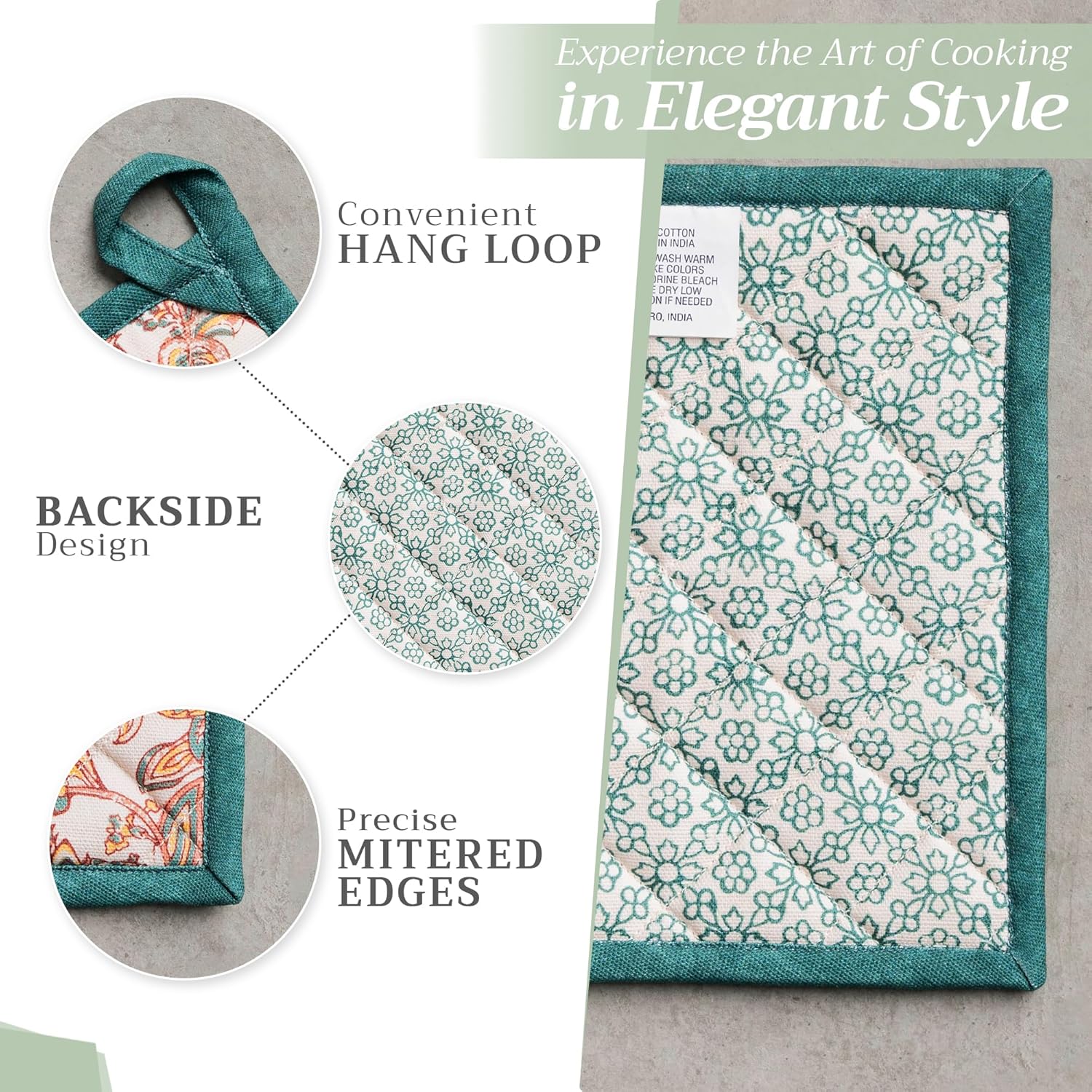 - 100% Quilted cotton: Made from premium quilted cotton, our pot holder ensures safe handling of hot pans or dishes. The soft, durable build provides excellent heat resistance and grip—perfect for everyday cooking and baking needs