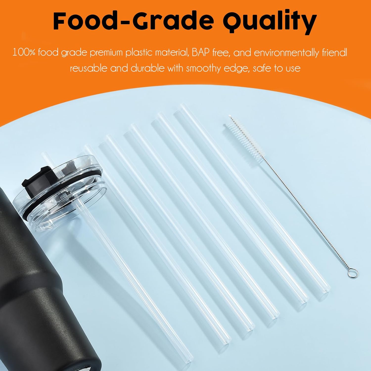 - 【Food Grade Material】Made of food grade primue plastic material, our clear straws compatible with stanley tumbler are safe and durable, BPA-free, lead-free, non-toxic, odorless, and thich enough to avoid warping, so can stand up to wear and tear.