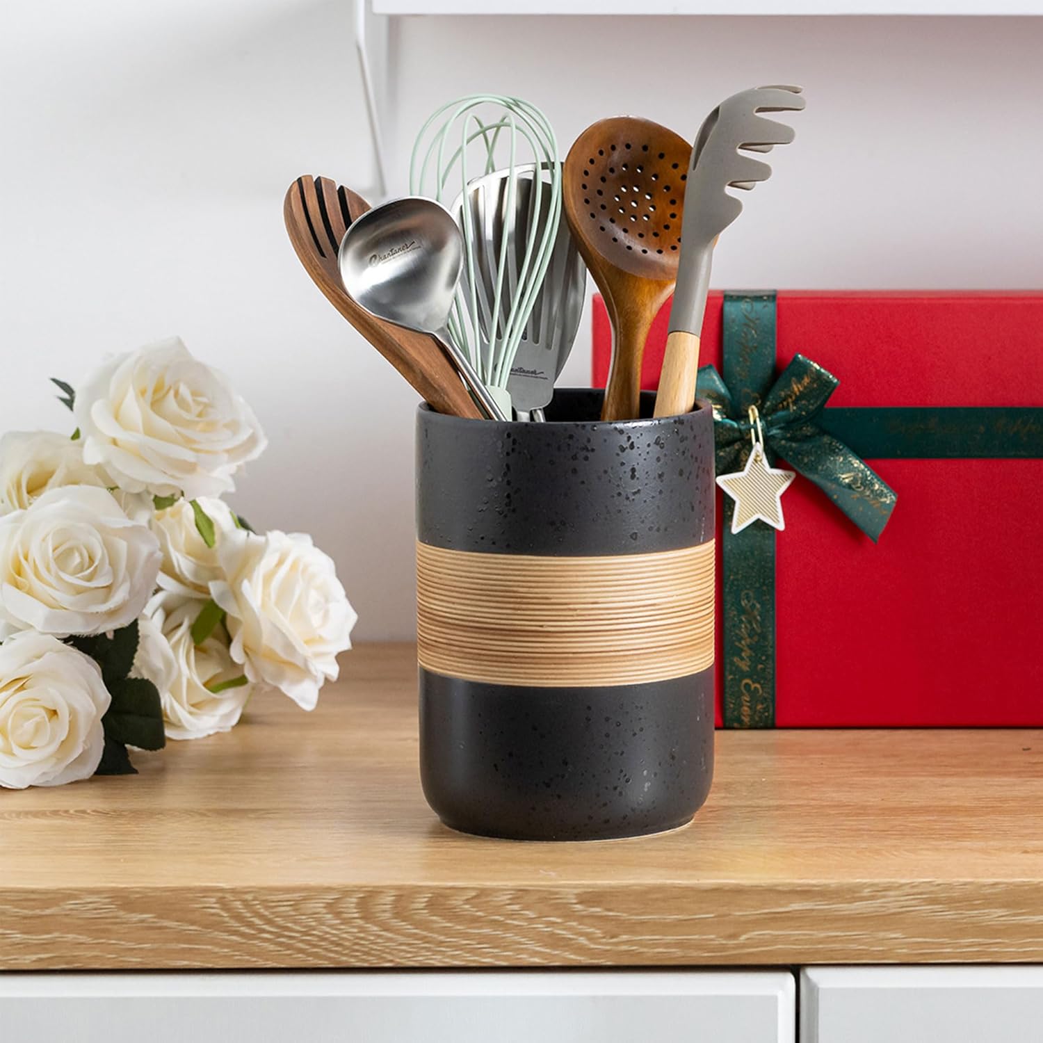 Coffee Container Jar with Lid, Ceramic Kitchen Food Storage Jars for Spice Sugar Cookie, Stackable Decorative Jars for Coffee Bar, Black & 28 fl.oz