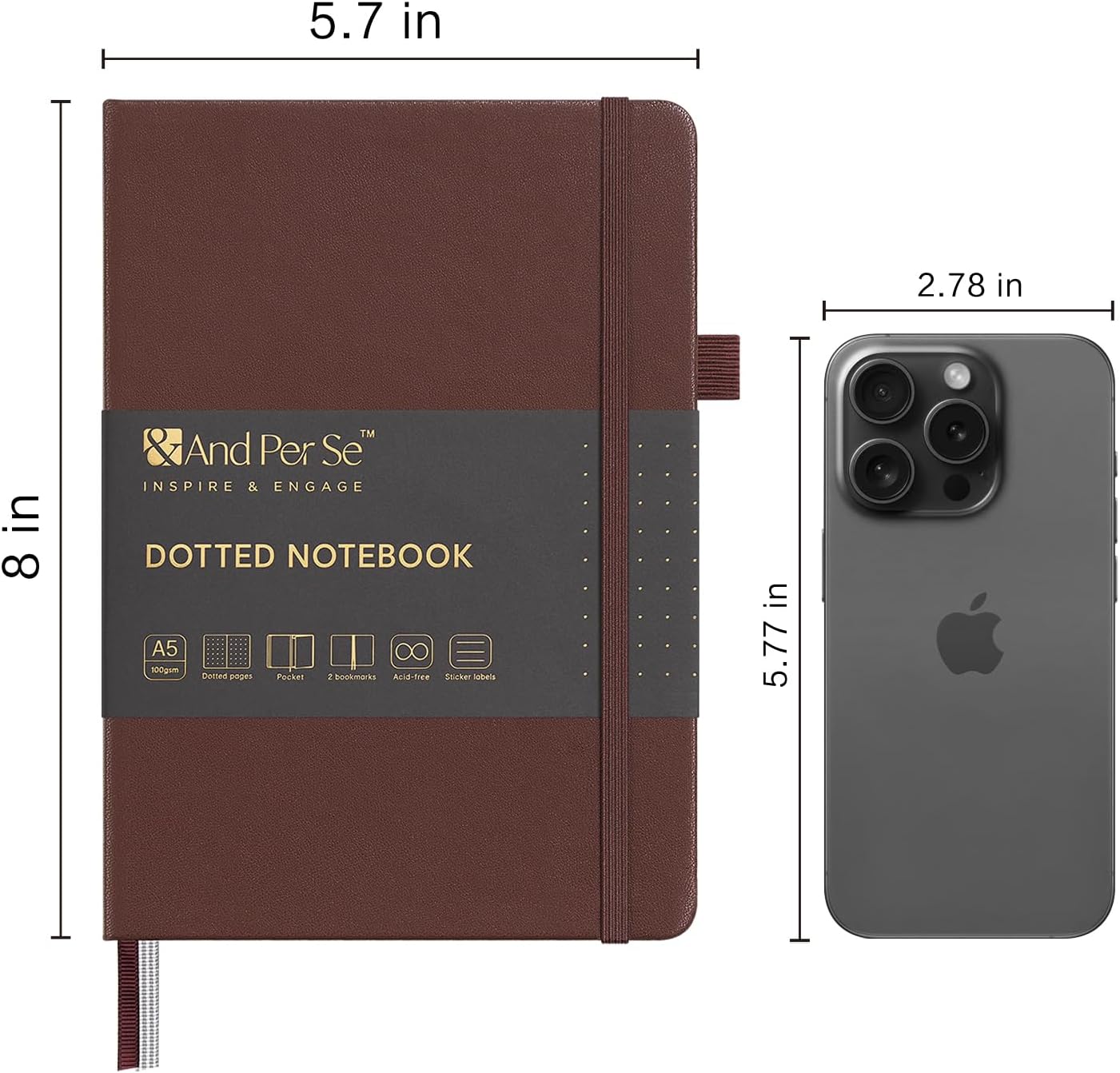 &And Per Se Dotted Journal Notebook, A5 Hardcover Bullet Dotted Journal, 160 Pages 100 gsm Thick Dotted Paper, 3 Sheets of Stickers Included - 5.7'' x 8''(Chocolate)