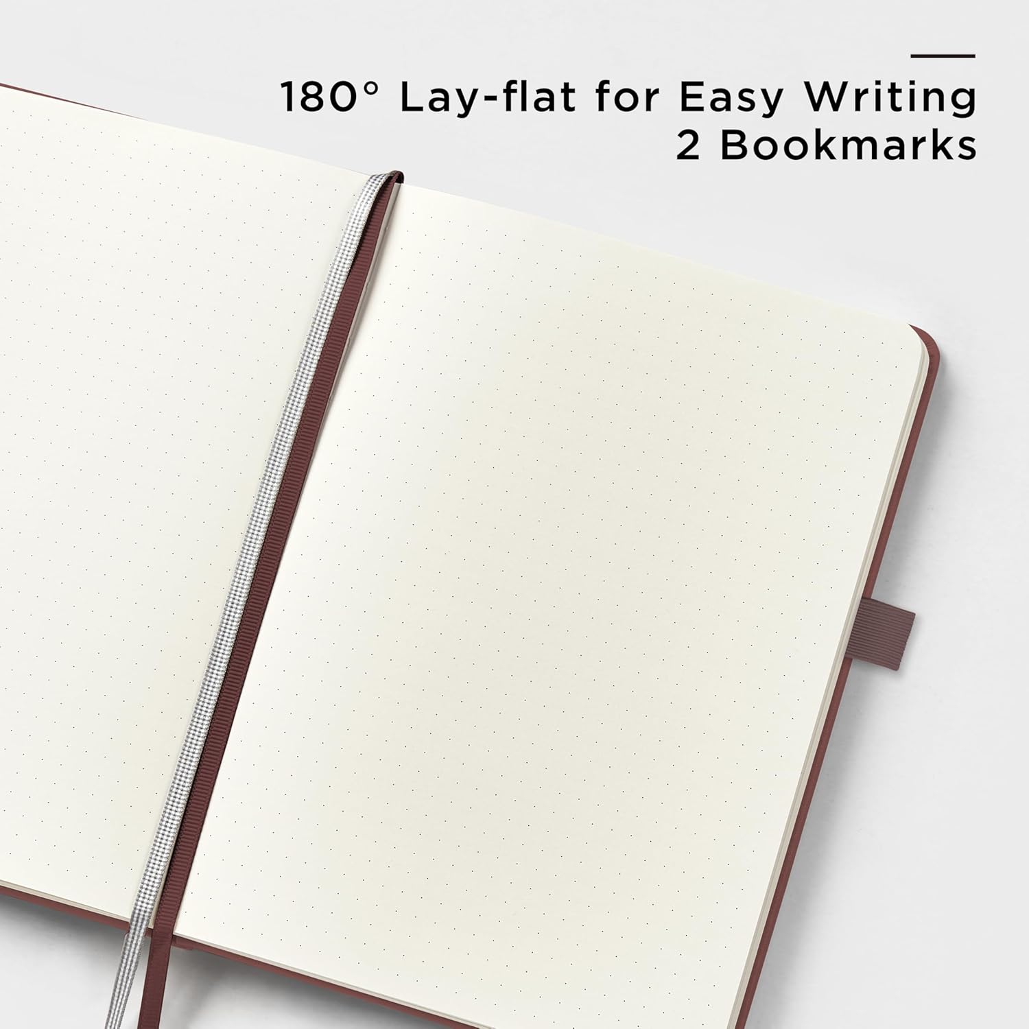 - 180° LAY-FLAT DESIGN: The lay-flat design allows for easy writing and ensures that you can utilize every page efficiently. Journaling, note-taking and planning has never been easier! 2 Bookmarks to help you find important content faster