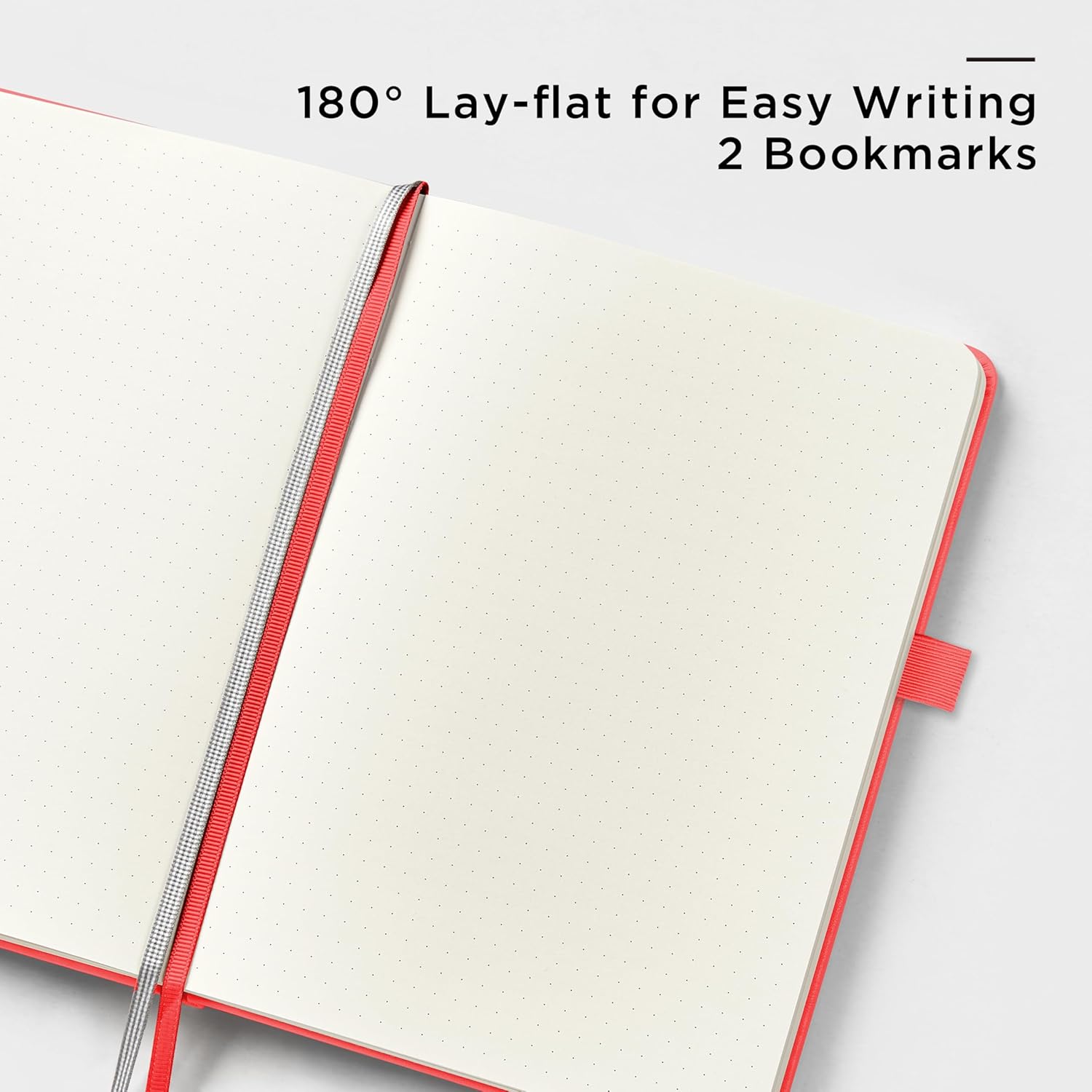 - 180° LAY-FLAT DESIGN: The lay-flat design allows for easy writing and ensures that you can utilize every page efficiently. Journaling, note-taking and planning has never been easier! 2 Bookmarks to help you find important content faster