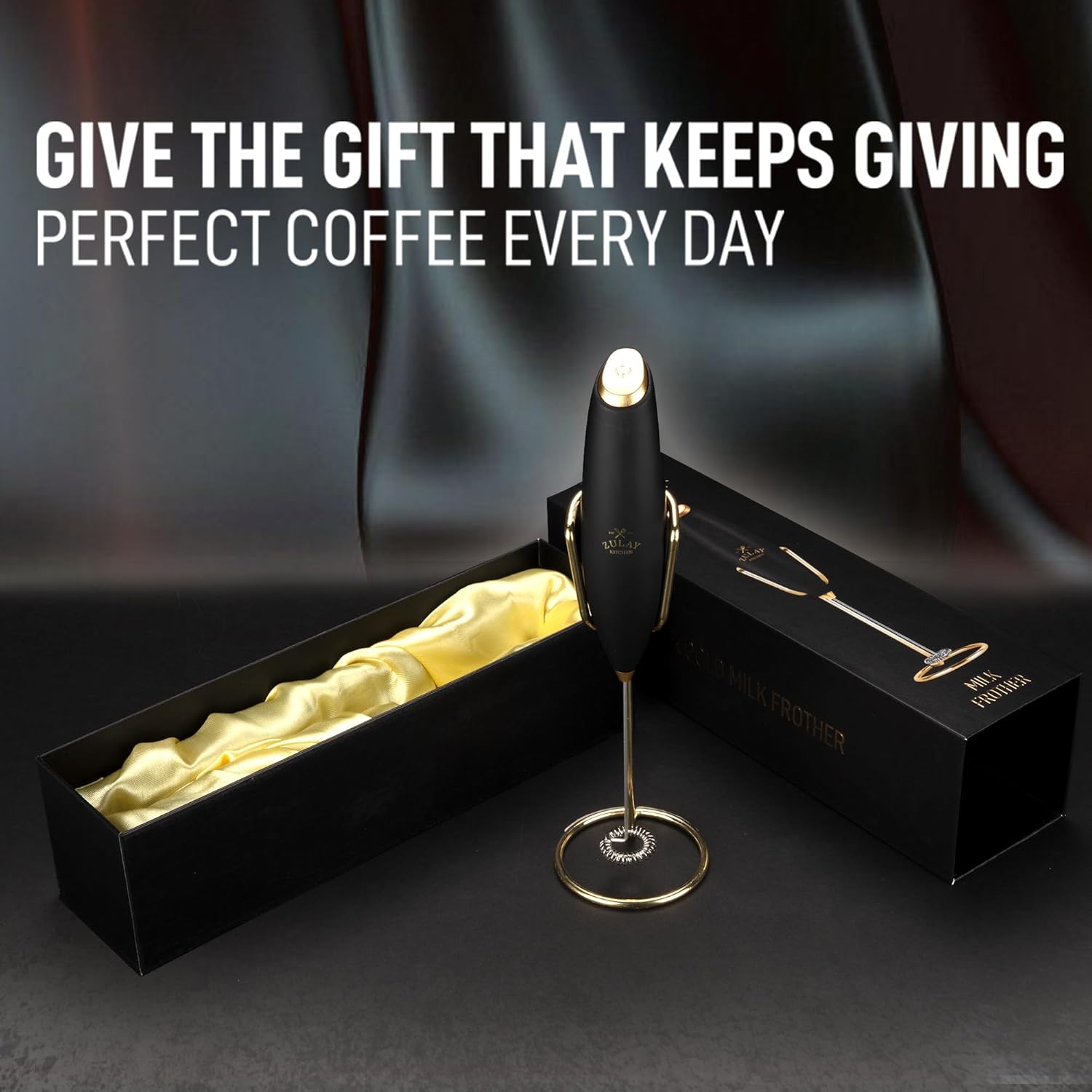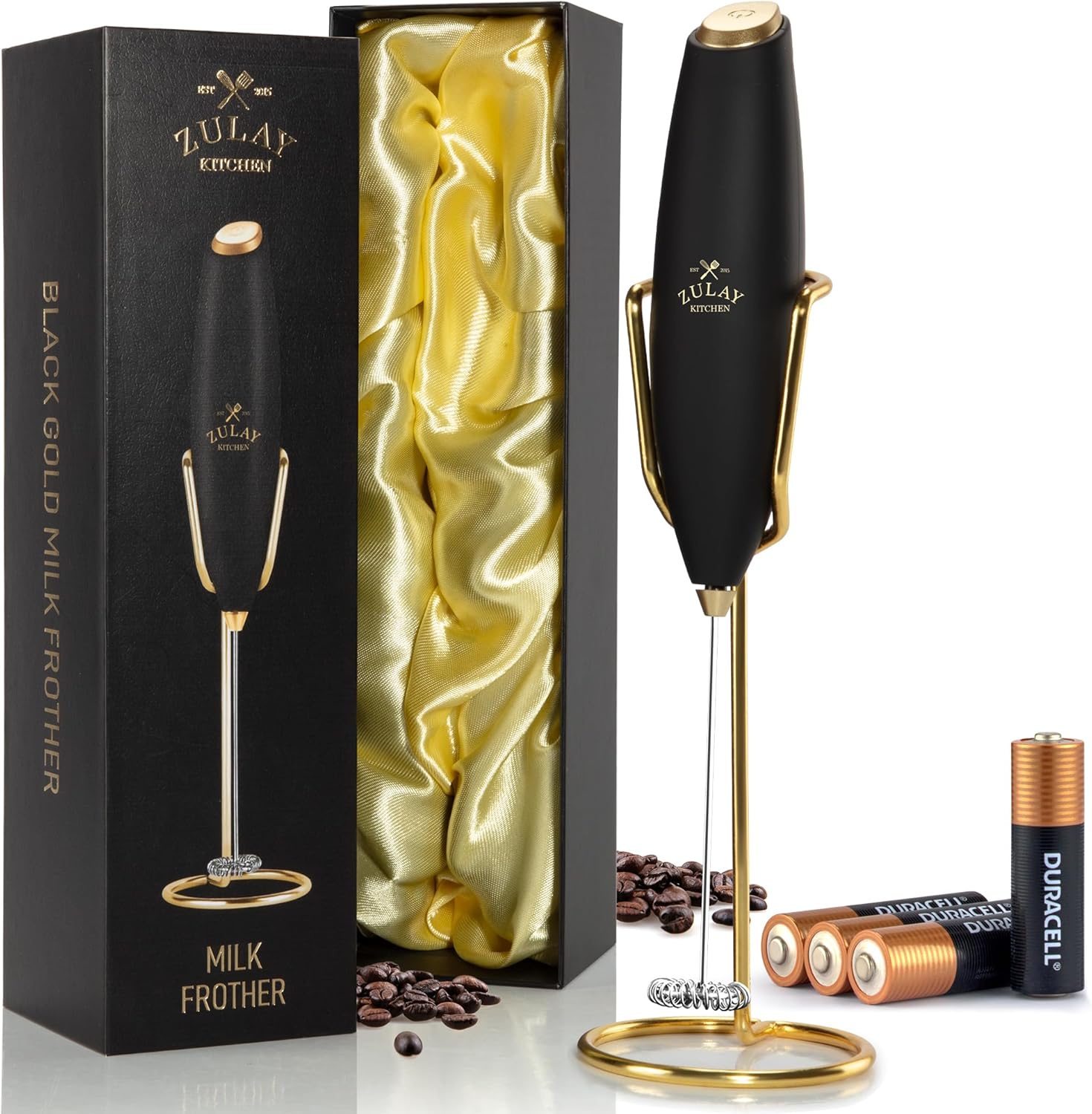 Zulay Kitchen Executive Series Luxury Gift Milk Frother with 4 Duracell Batteries – Handheld Electric Foam Maker for Coffee, Lattes & Hot Chocolate – Deluxe Finish, Ultimate Gift for Coffee Lovers