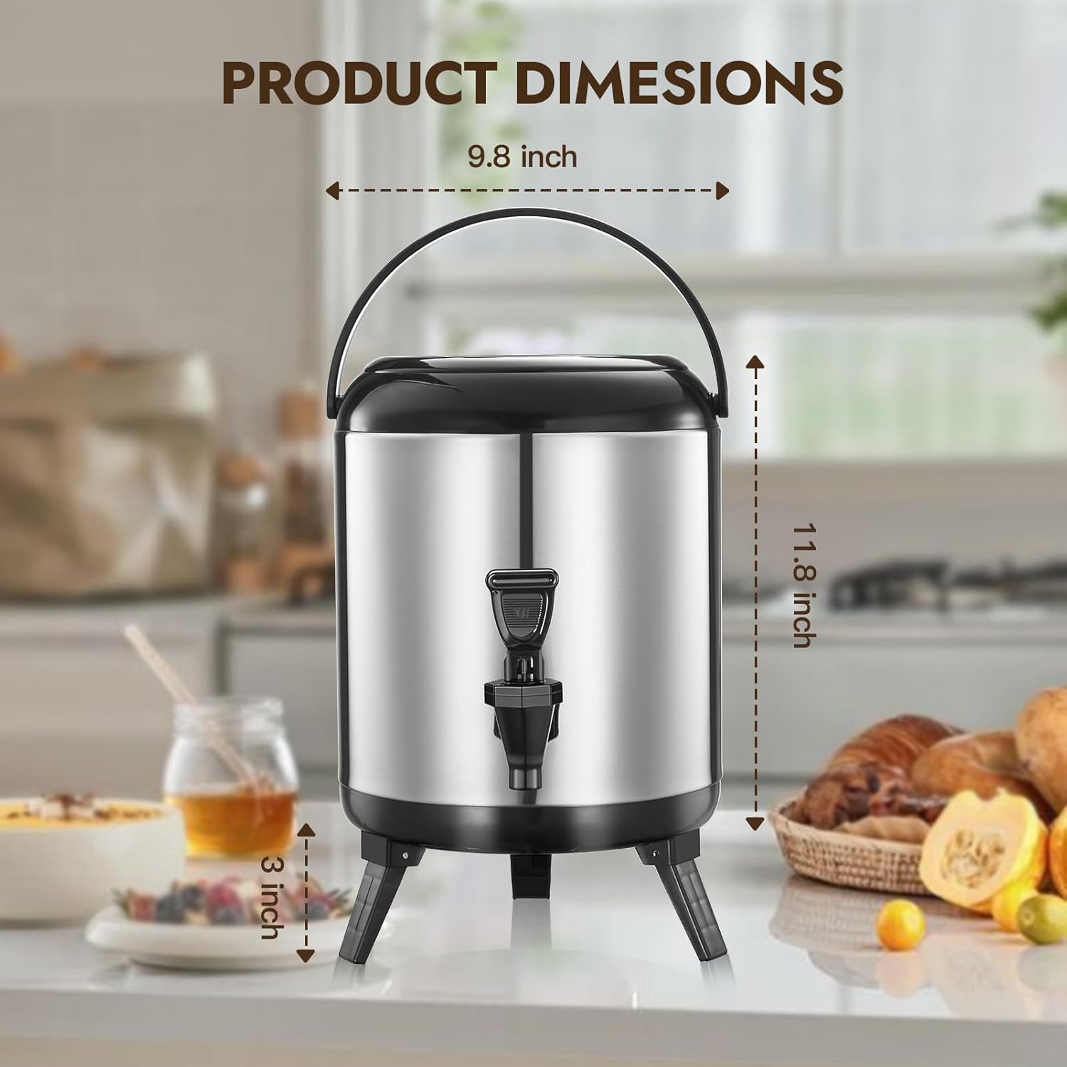 Insulated Beverage Dispenser, Thermal Hot Beverage Dispenser, Stainless Steel Hot Beverage Dispense, Hot Coffee Dispenser with Spigot for Coffee Hot tea,Cold Milk,Water,Juice 6L (Non-electric)