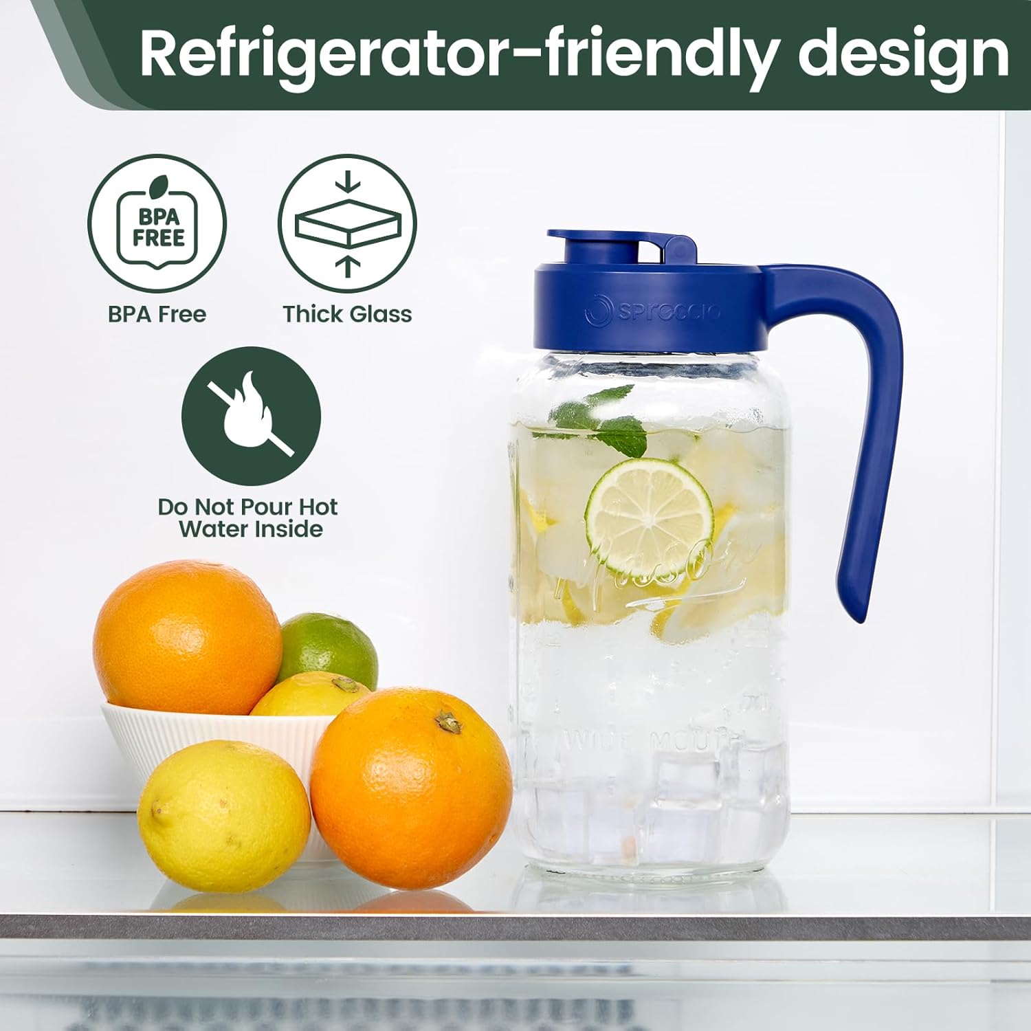 - Effortless Pouring Glass Pitcher with Lid: Enjoy effortless pouring with the wide-mouth flip-cap spout and non-slip handle. Say goodbye to unwanted spills and mishaps, as our lid pops open to ensure your content won't leak or spill.
