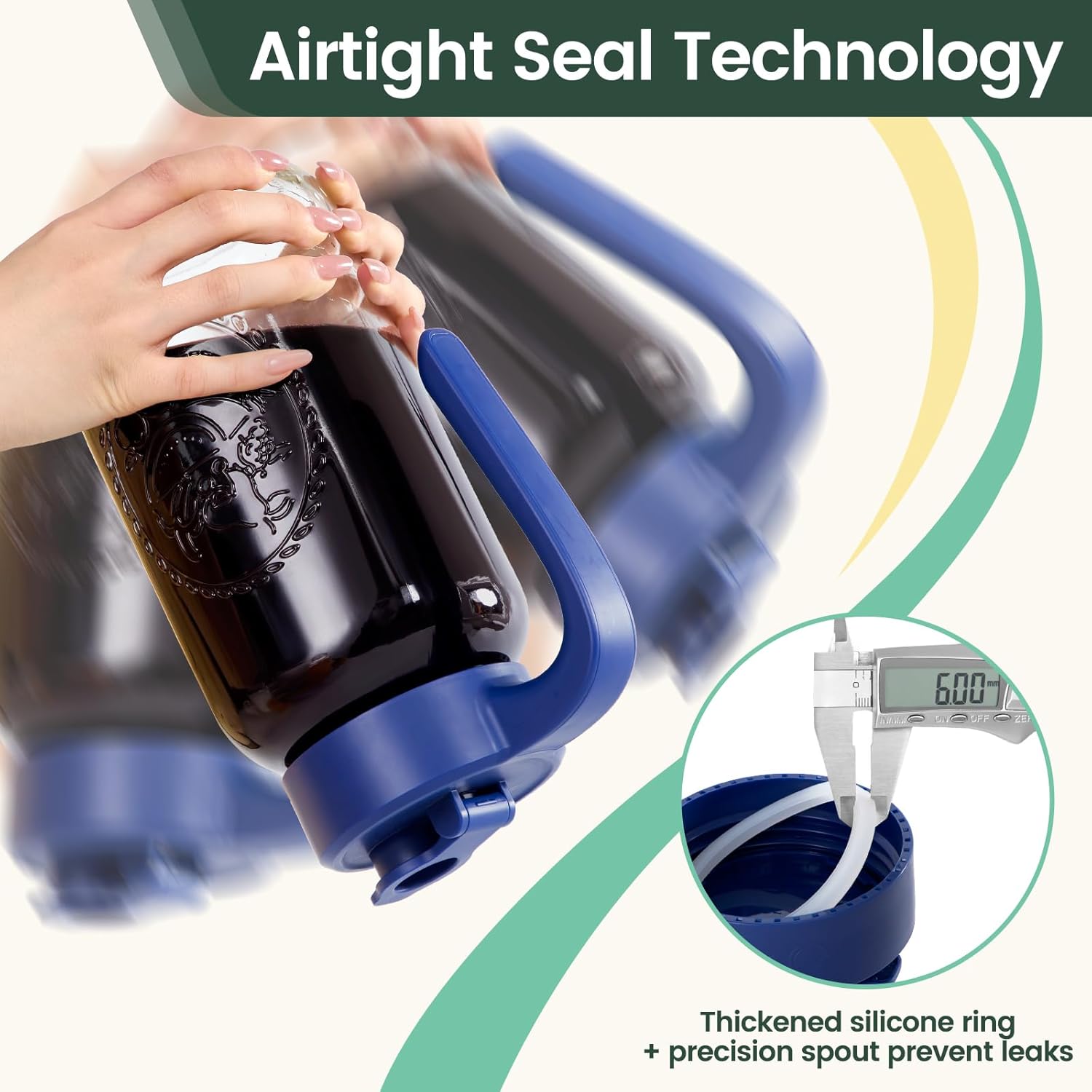 - Airtight and Leakproof Storage: Our Mason Jar Pitcher features an airtight and leakproof silicone seal, ensuring a seamless and mess-free storage experience. Keep your contents fresh and prevent leaks and drips, whether you store it in the fridge, on the counter, or in the pantry.