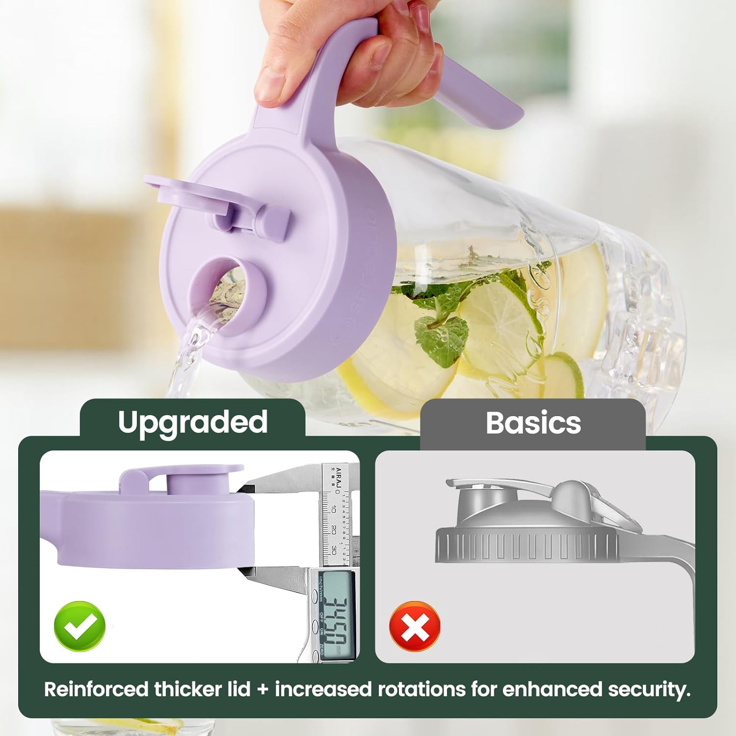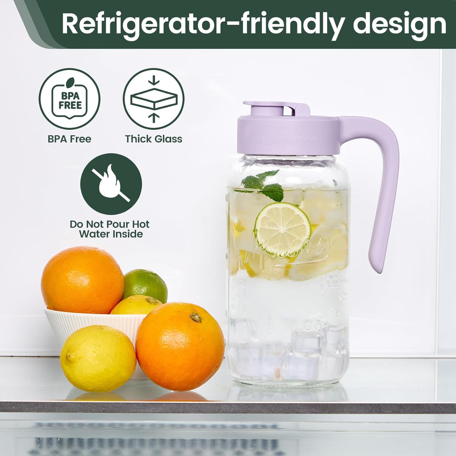 - Effortless Pouring Glass Pitcher with Lid: Enjoy effortless pouring with the wide-mouth flip-cap spout and non-slip handle. Say goodbye to unwanted spills and mishaps, as our lid pops open to ensure your content won't leak or spill.