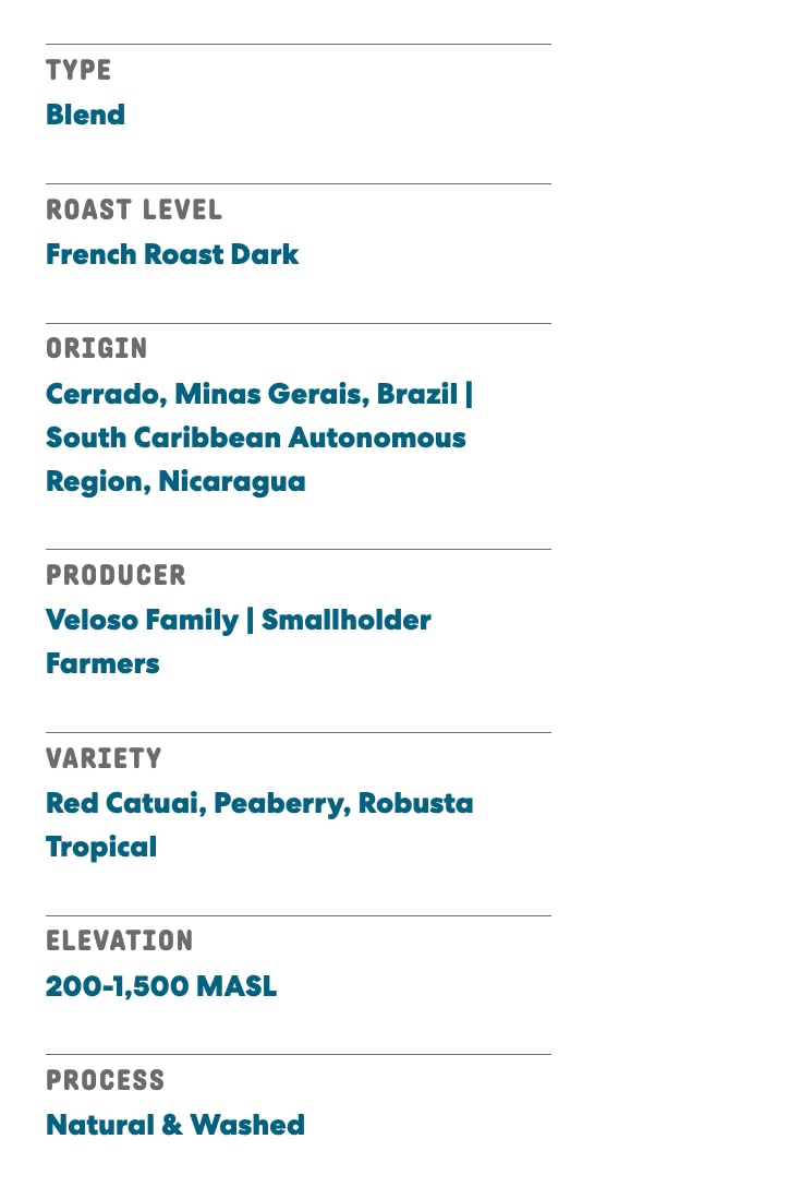 - BIG CITY FRENCH ROAST: Sturdy and sweet, this French Roast features deeply comforting flavors of burnt sugar, baking chocolate, and roasted nuts. Big City’s classic profile was crafted for wide appeal, delivering full-bodied flavor without ever compromising on sweetness.